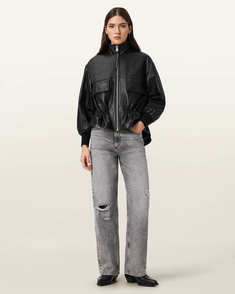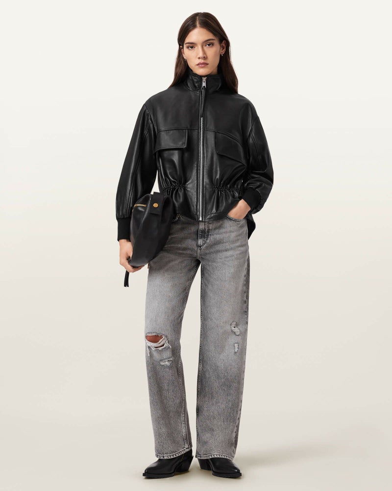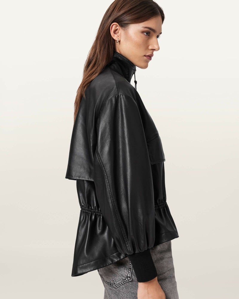AllSaintsらしいシープレザーに、ペプラムヘムで洗練されたアクセントをプラス。