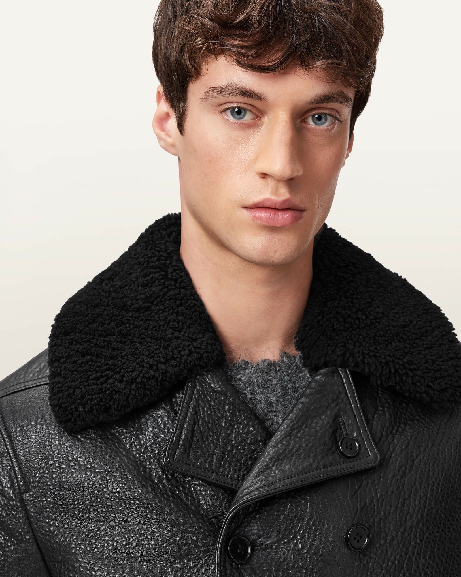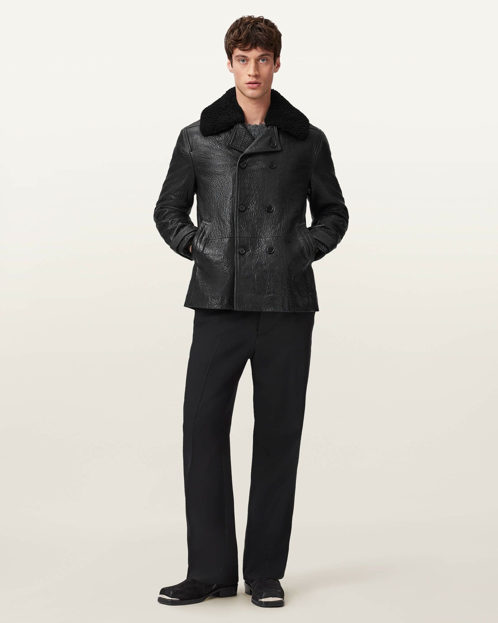 | 素材 | 表地: 100% ラムレザー 裏地: 100% ポリエステル(リサイクル素材) 襟: 100% ラムレザー |