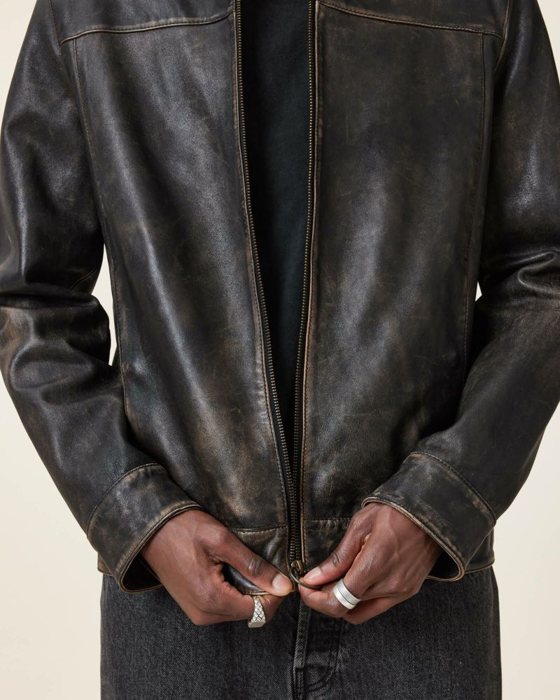 ダンスフロアからDJセットまで、ロンドンのアイコニックなナイトライフにインスパイアされたレザージャケット。Alkan ジャケットはウォッシュ加工を施したプレミアムレザーを使用したユニークな退色仕上げ。エッジステッチ、シームディテールがオーセンティックなヴィンテージスタイルを演出。オールセインツのシグネチャー金具仕上げ。
