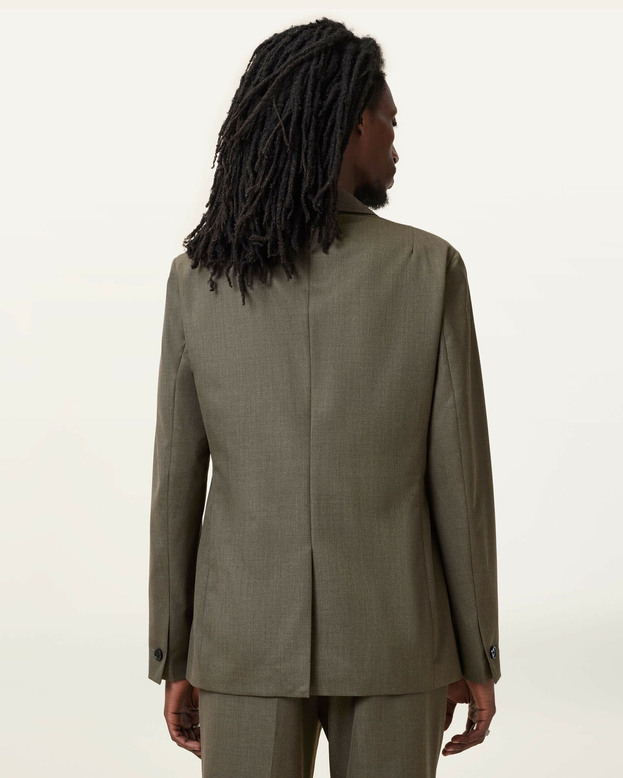 オールセインツのテーラードスタイル。Ward ブレザーは、シグネチャーのエッジィな雰囲気を演出するツートーン仕上げの織生地を使用したリラックスシルエット。白のタンクトップとマッチするスリムレッグトラウザーと合わせてスタイリングの完成。