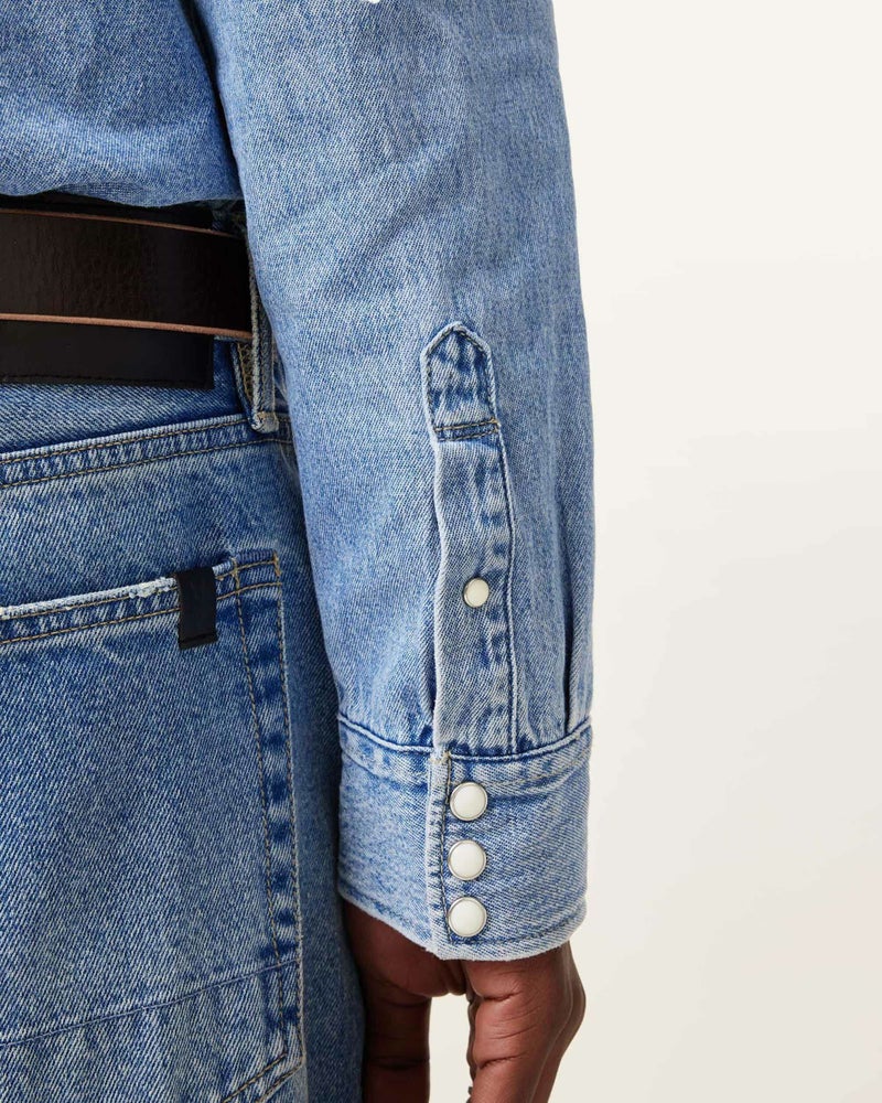 オールセインツのユーティリティスタイル。MacGowan シャツはパッチポケット2つ備えたリラックスシルエット。オールセインツの豊富なデニムスタイル。