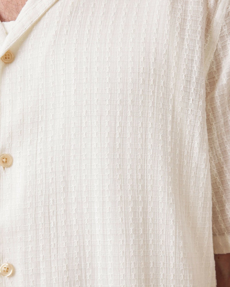 Shawシャツは、リラックスしたシルエットにショートスリーブを採用。 リゾートカラーとストレートヘムが特徴のクラシックスタイル。テクスチャード仕上げが印象的。