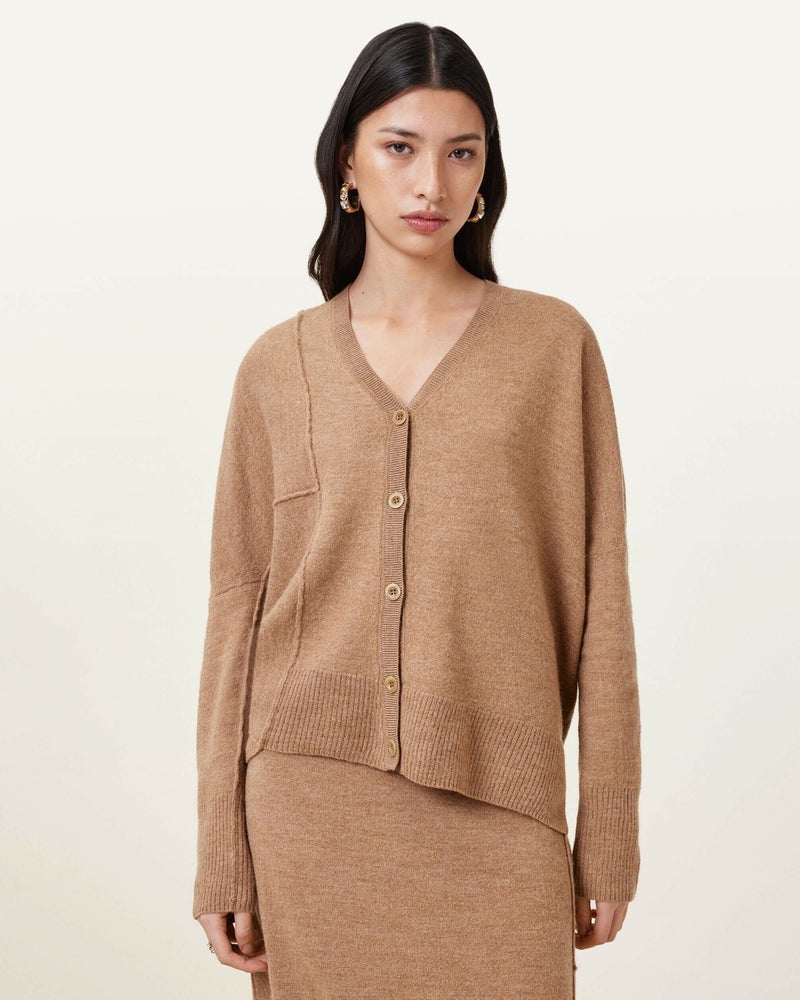 季節をまたいで着られるシンプルなカーディガン。Antonia カーディガンは、シグネチャー入りボタンダウン、リブトリムのV ネックシェイプ。やわらかいボイルウールを使用。