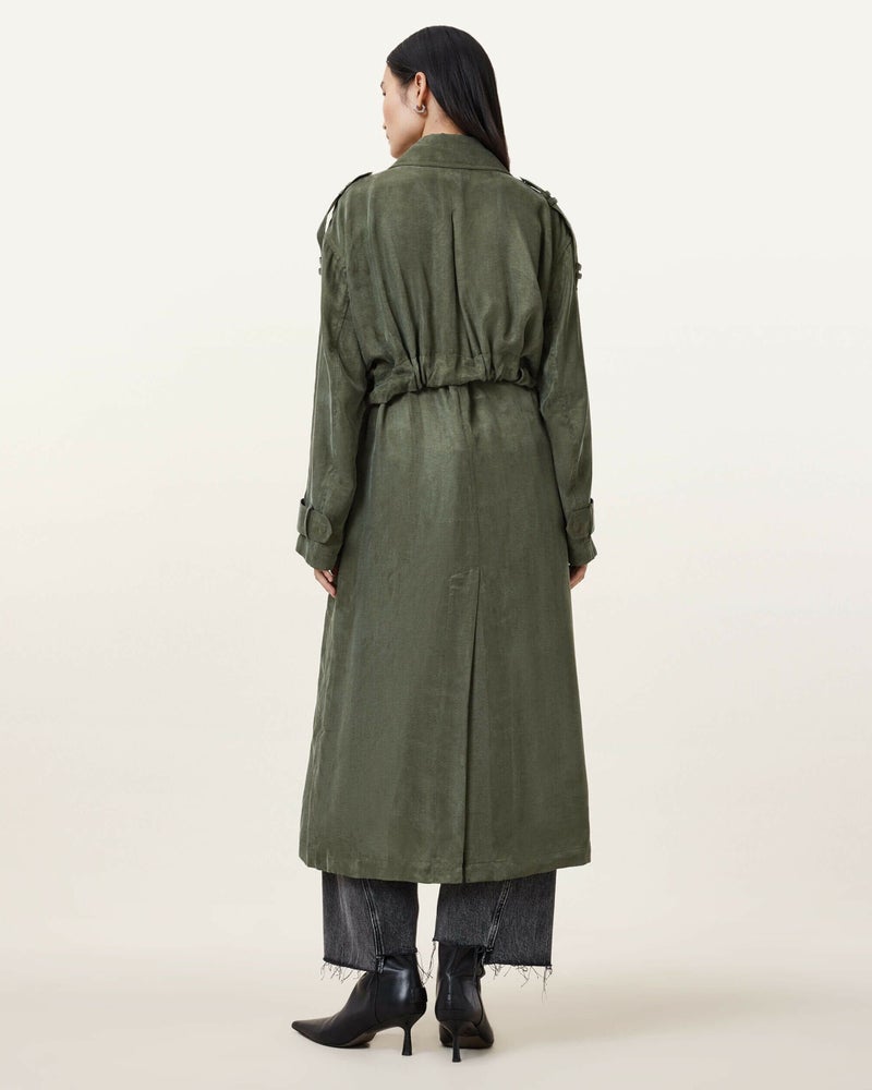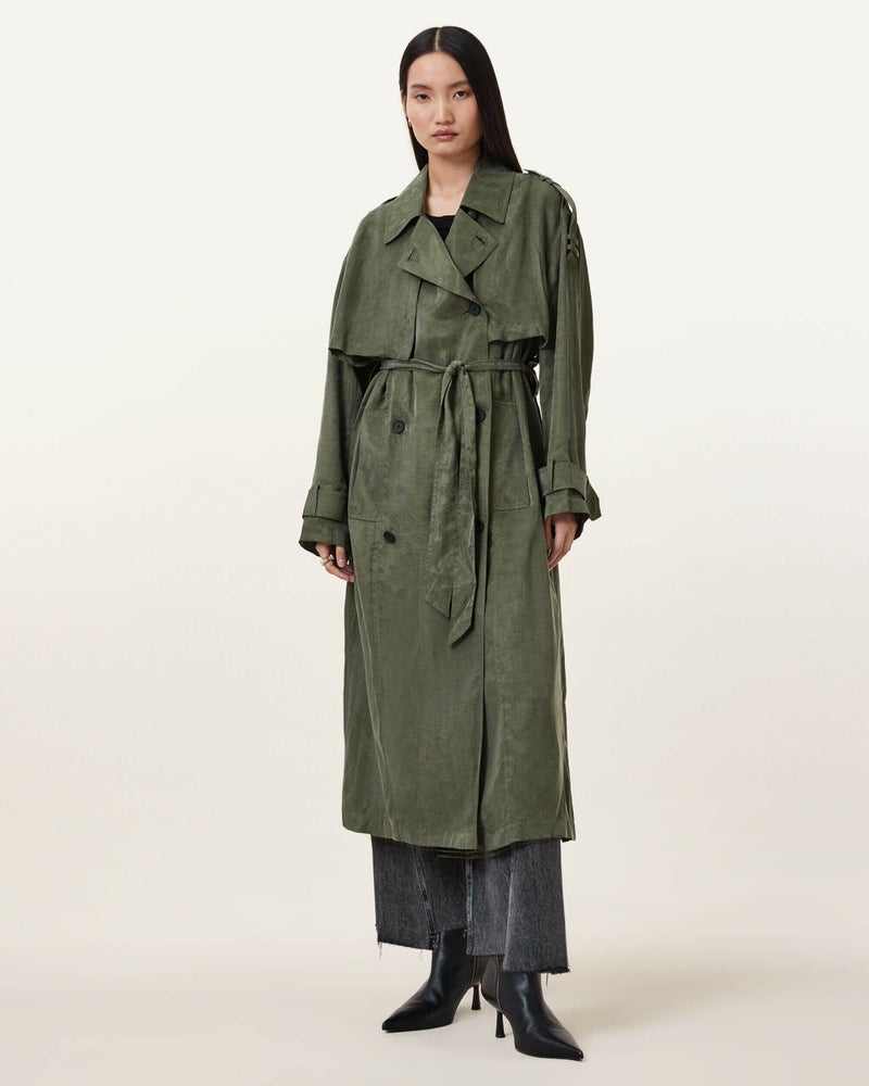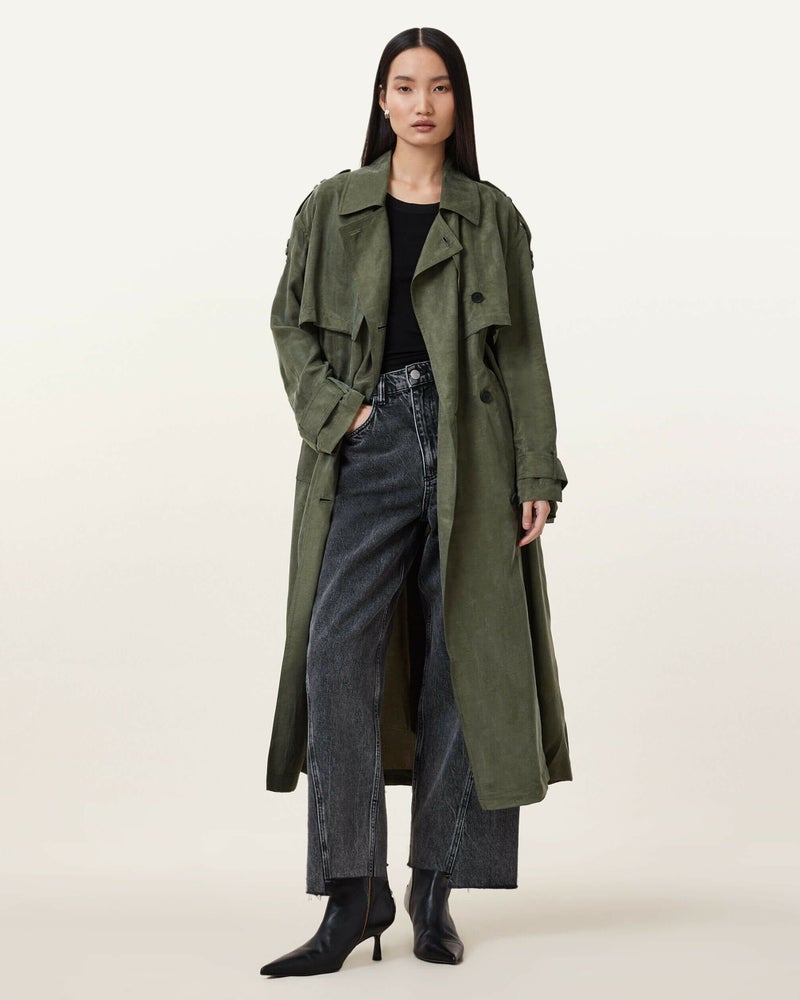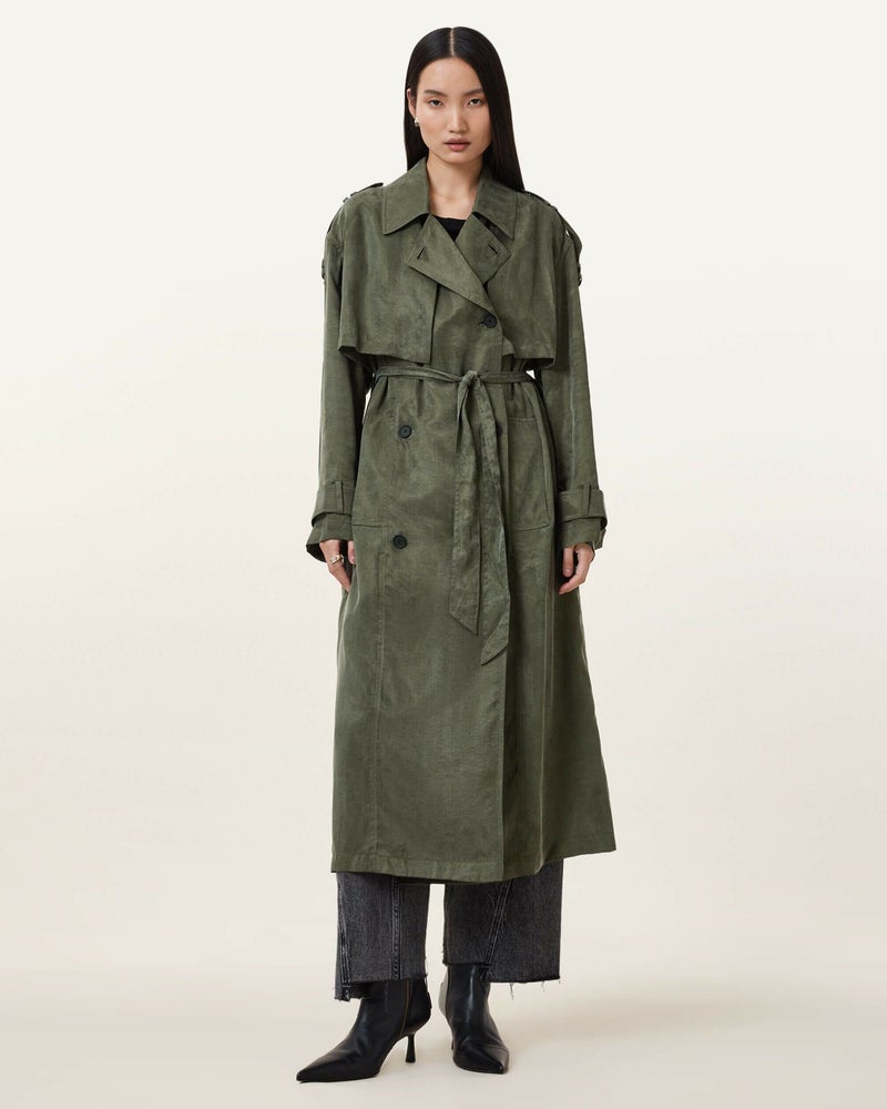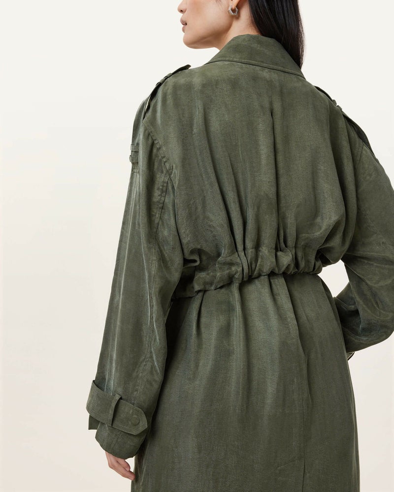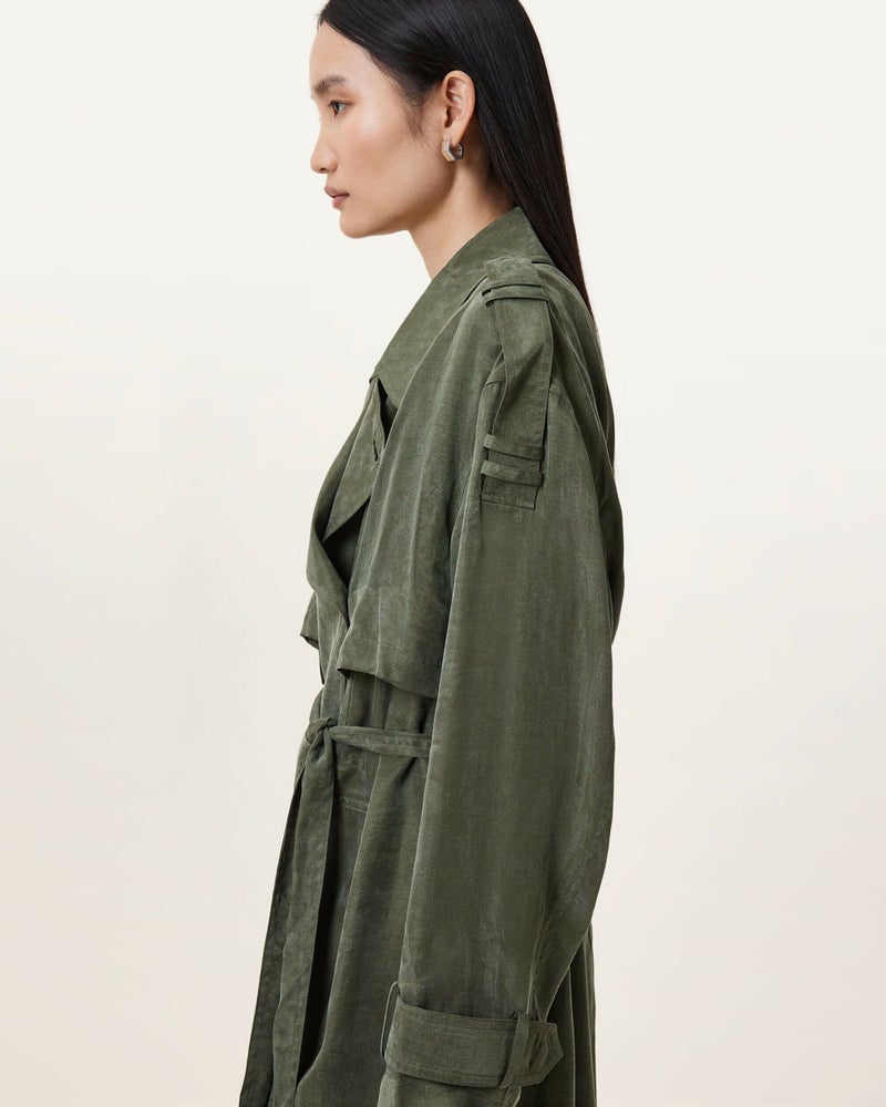 ライトウェイトレイヤーならLinnie トレンチをためしてみよう。とろみのあるファブリックを使用し、セルフタイウエストベルトを備えたバランスのとれたシルエットのレギュラーシェイプ。カフスとベルトにトップステッチ仕上げ。