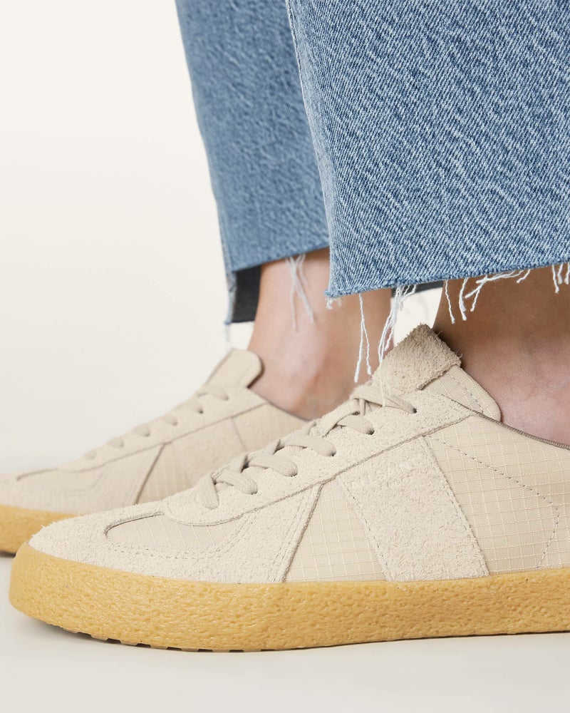 新作スニーカー、Jaimee はオールセインツらしいデザイン。プレミアムレザー、スエードパネルを使用し、ユーティリティにインスパイアされたローカットスタイル。サイドにTシャツやアクセサリーでおなじみのオールセインツシグネチャーロゴ付き。リサイクル裏地仕上げ。コンフィースニーカーを新しいお気に入りにしよう。