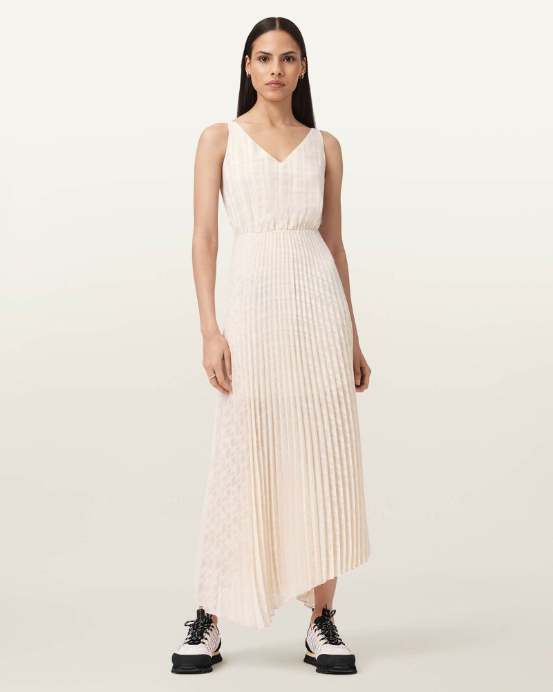 Sineadプリーツドレスは、デスクからディナーまで、パンクなエッセンスを。