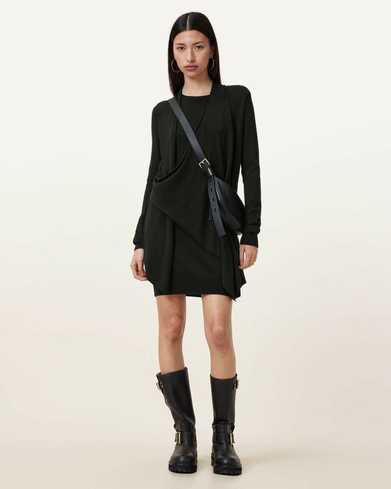 ベストセラーのDrina カーディガンにインスパイアされ、同じメリノウールを使用しウエストサイドにジッパーを備えたニットドレス。アンクルブーツ、ヒール、フラットシューズに合わせやすいドレープシルエット。