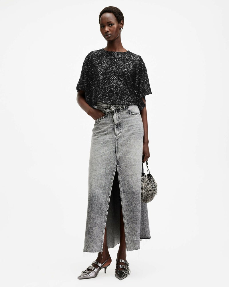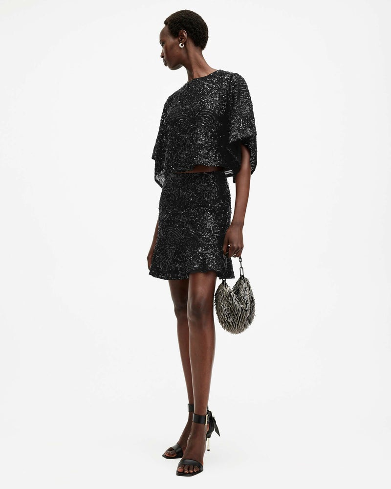 シーズンを通してキラキラさせよう。Ivy トップはラウンドネック、繊細なドレープスリーブを備えた軽やかなシェイプ。エレガントなジェム、スパンコール、ビーズ装飾による起隆のあるテクスチャーがリュクスな雰囲気。マッチするスカートまたはフィットトラウザーとステートメントメタリックヒールと合わせてドレスアップしよう。