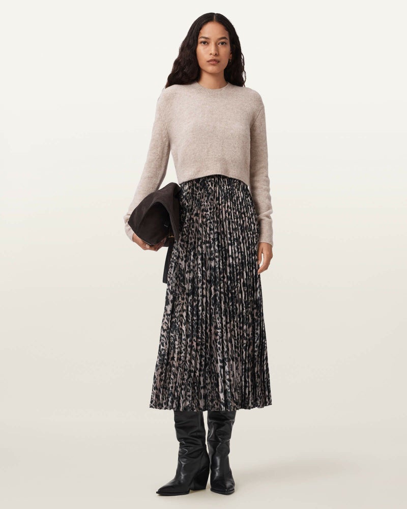 オンもオフもこれ一枚。ニット×ドレスのレイヤードスタイルで、きちんと感も華やかさも。