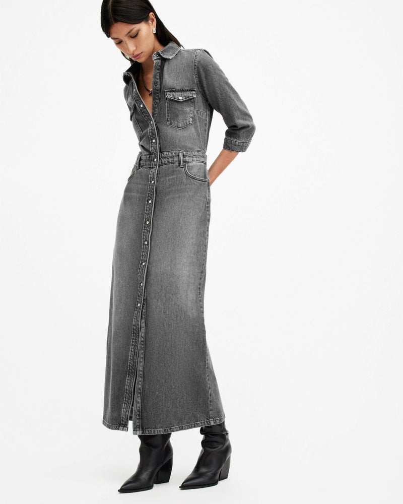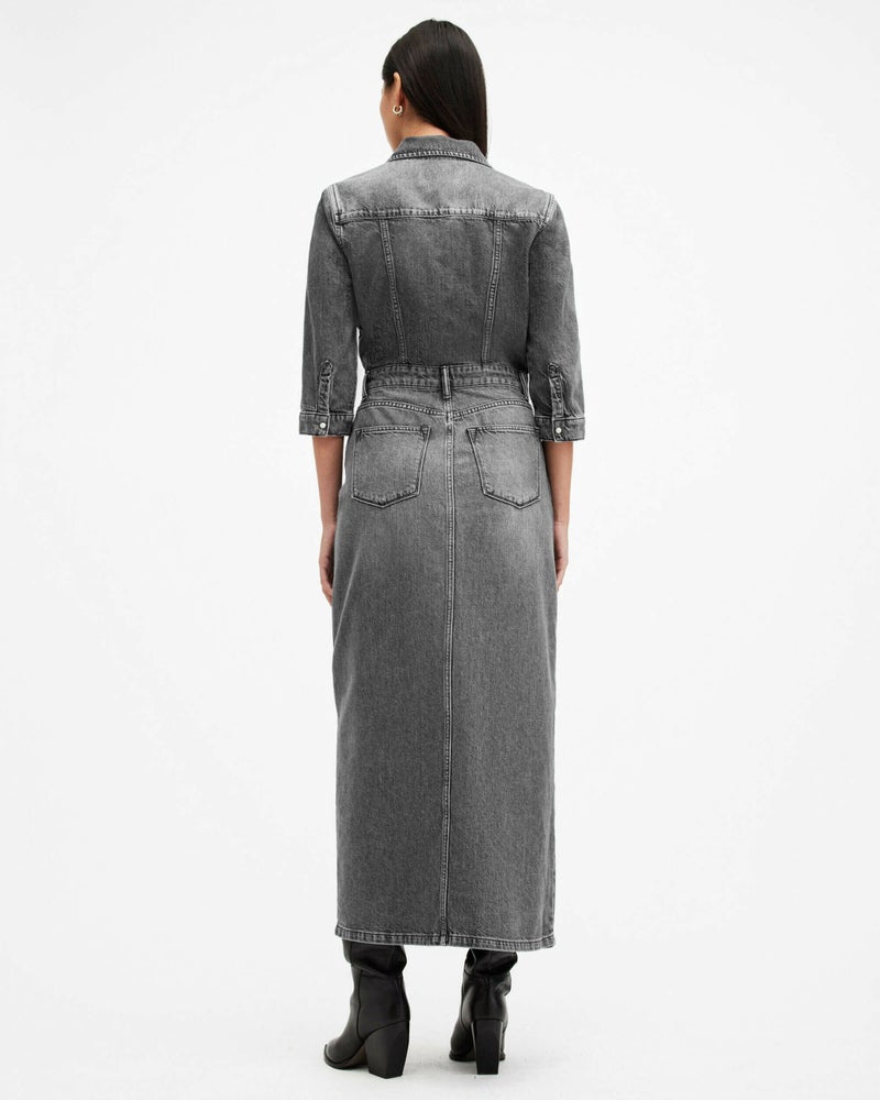 新作デニムドレス。90年代バイブスにアティテュードをプラスしたクラシックな長袖シャツドレスシルエット。ローウエストバンドをアクセントにしたスリムフィットのマキシ丈。Blair ドレスは、オーガニックコットンのオーセンティックデニムを使用し、胸にパッチポケット、スリーブにディストレスディテールを施した差をつけるデザイン。