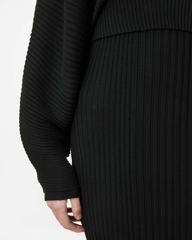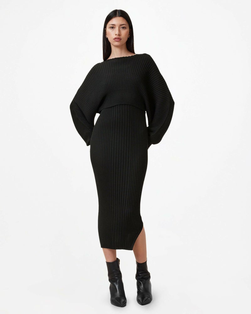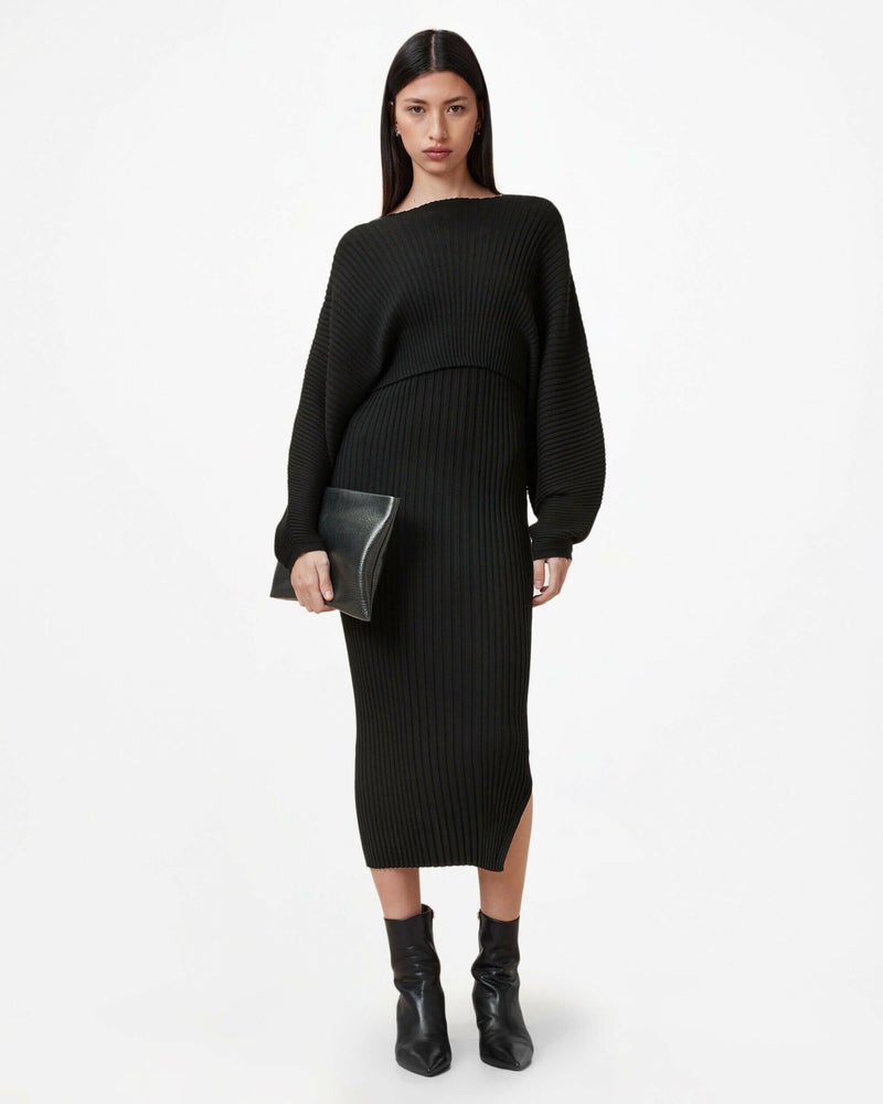 Minoriは、2-in-1スタイルの新定番。 リブ編みのミニドレスに、クロップドバットウィングジャンパーが重ねられたデザイン。ボディコンフィットのドレスはシームレス仕上げで、ジャンパーが暖かさをプラスします。