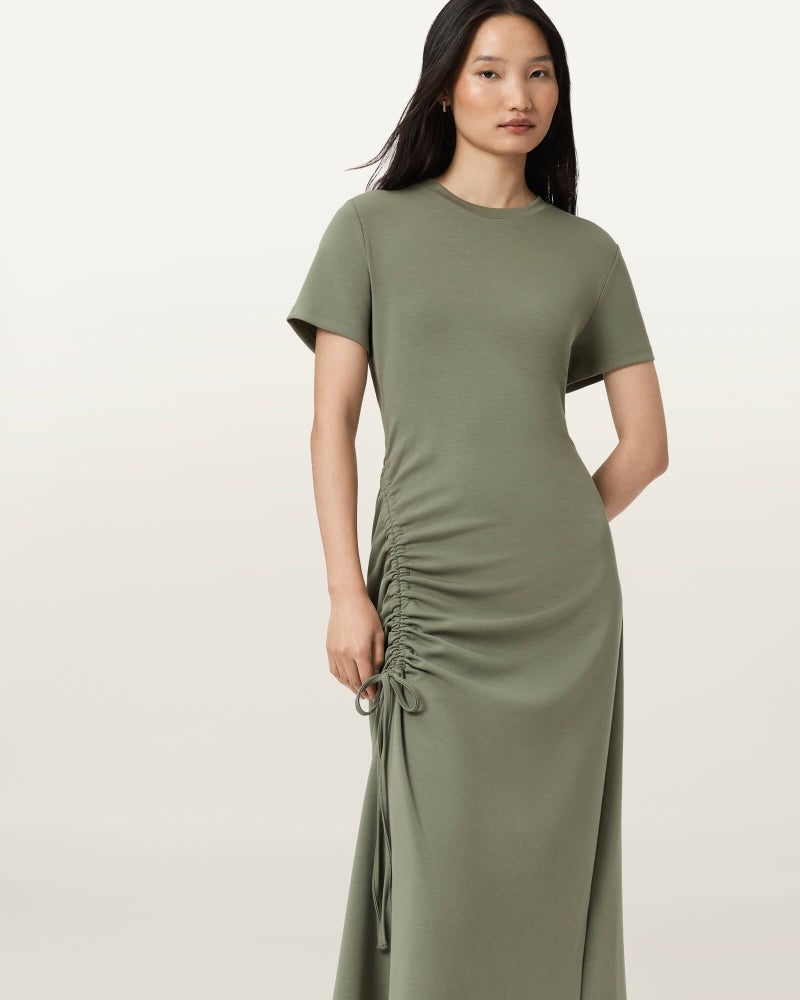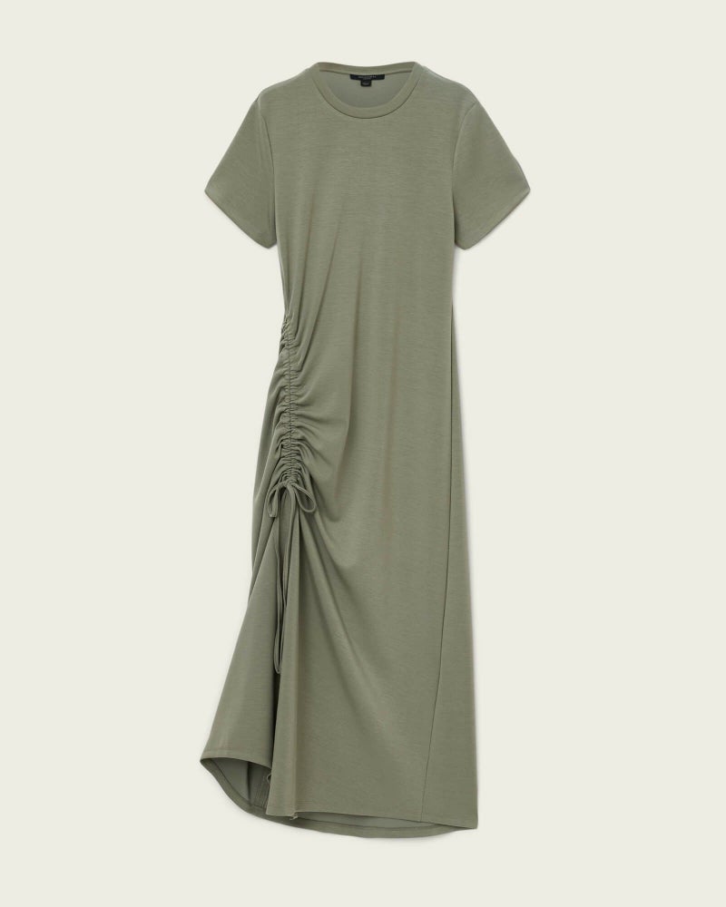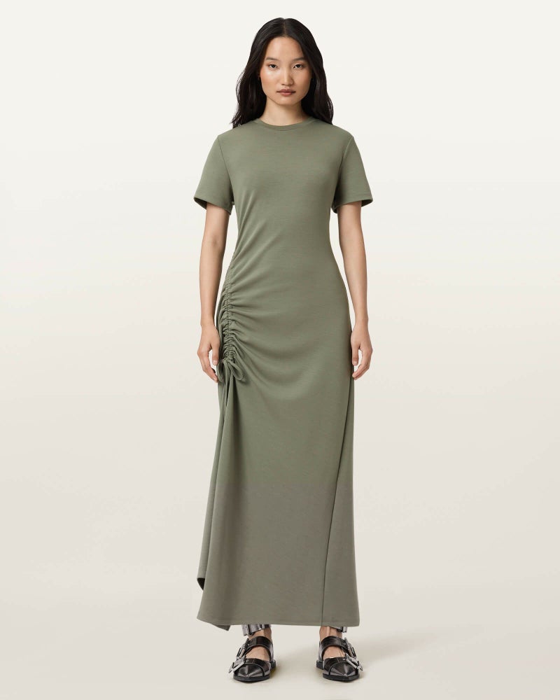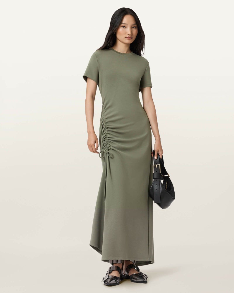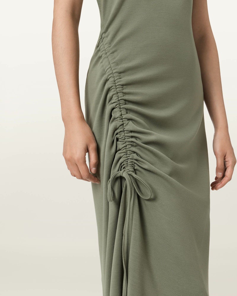 シルエットはドローコードで自在に調整。着る人に寄り添うマキシドレス。