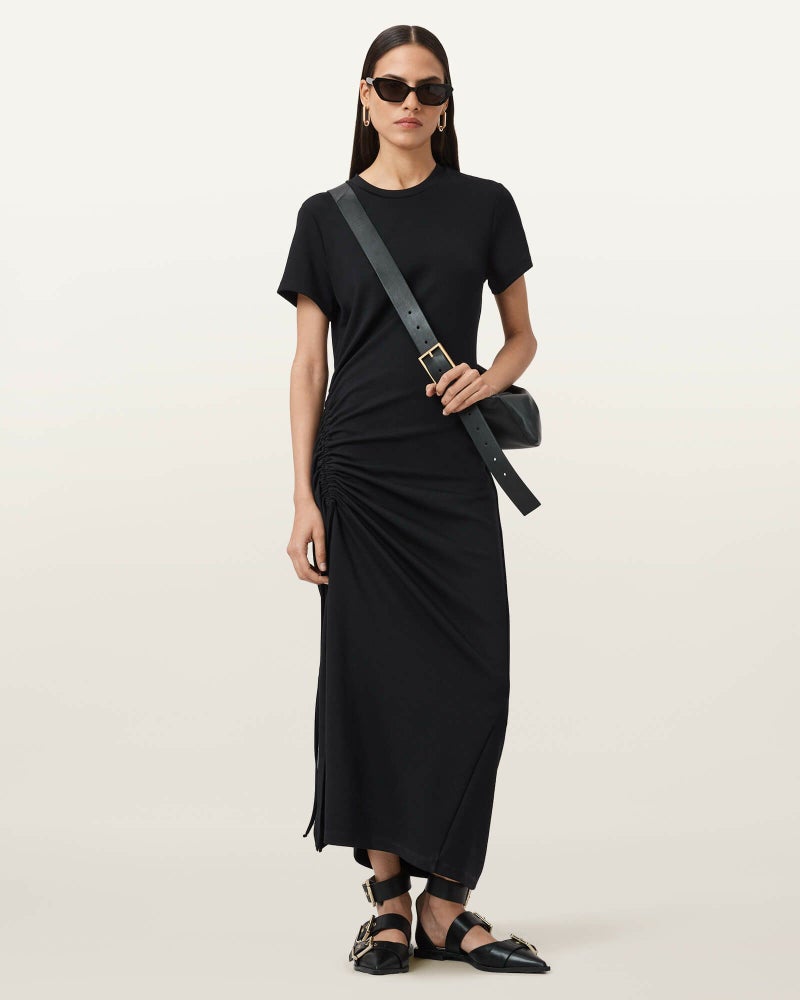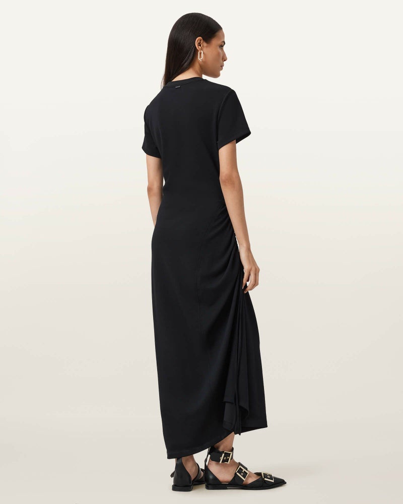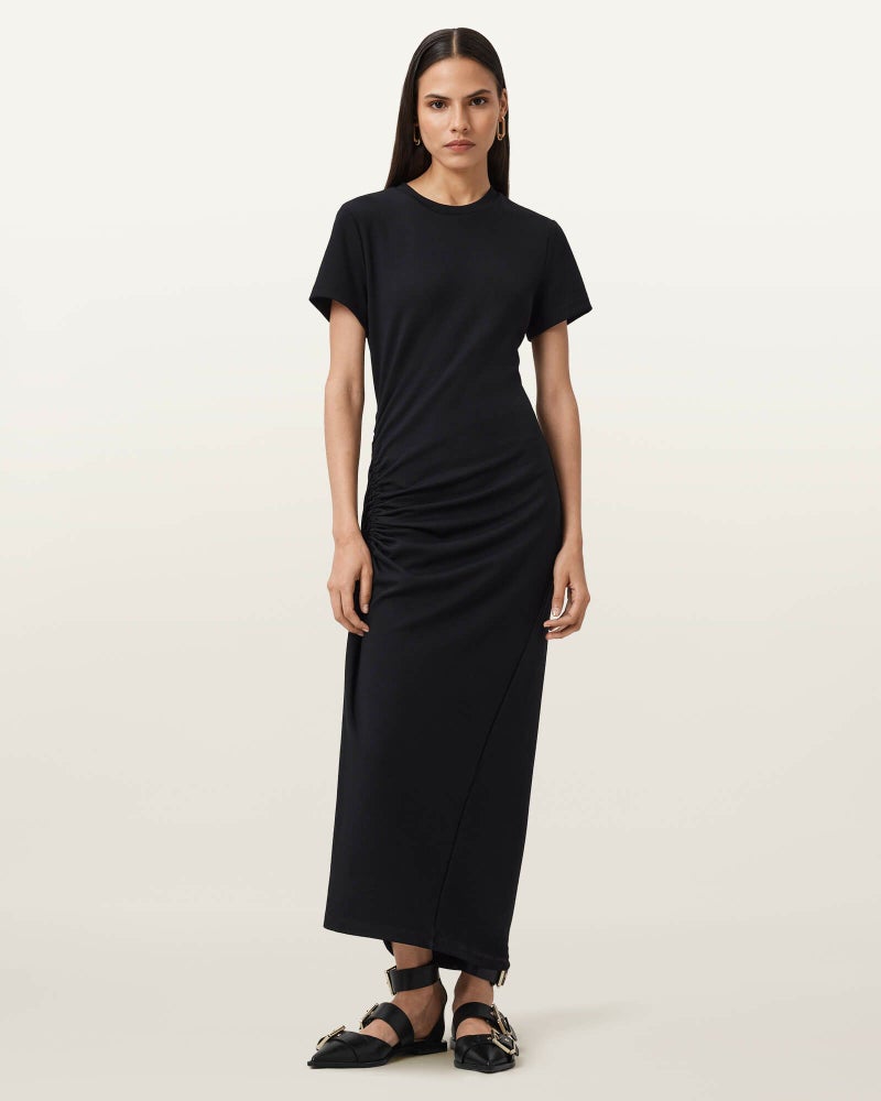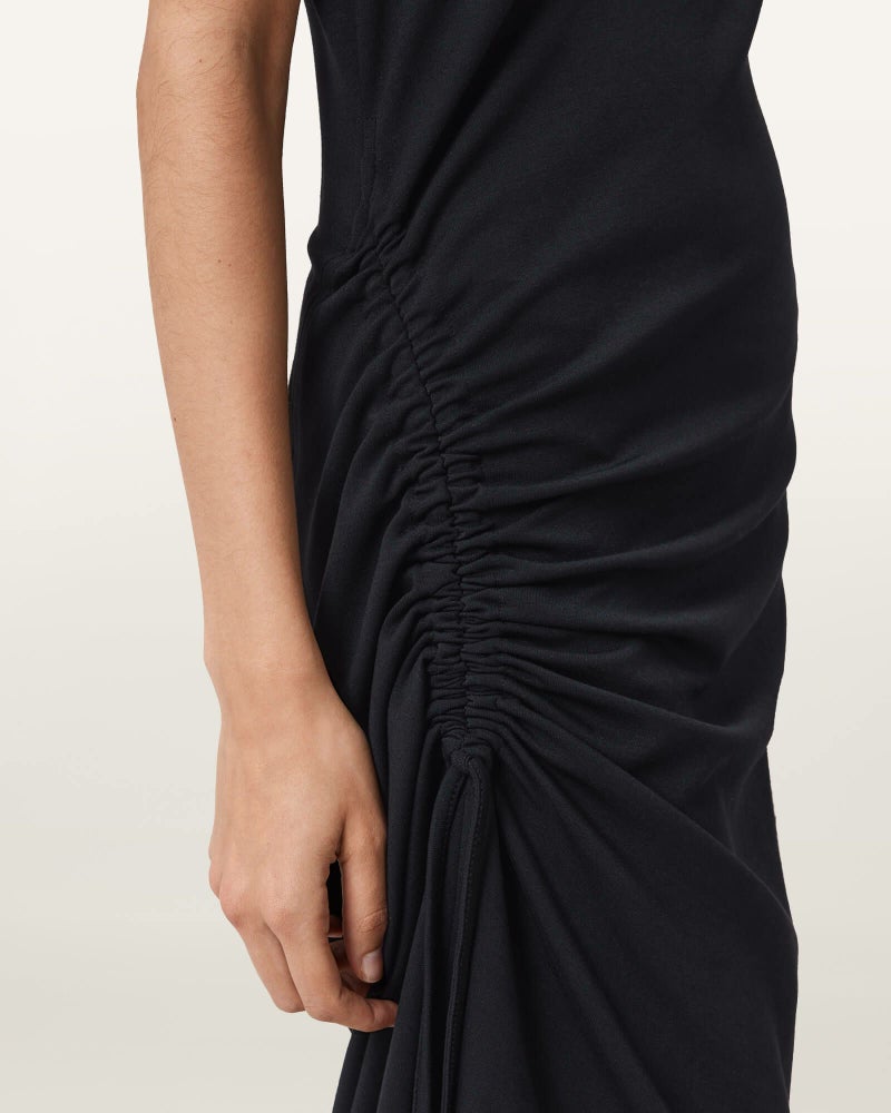シルエットはドローコードで自在に調整。着る人に寄り添うマキシドレス。