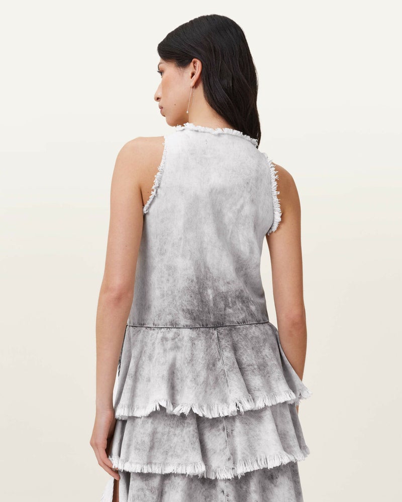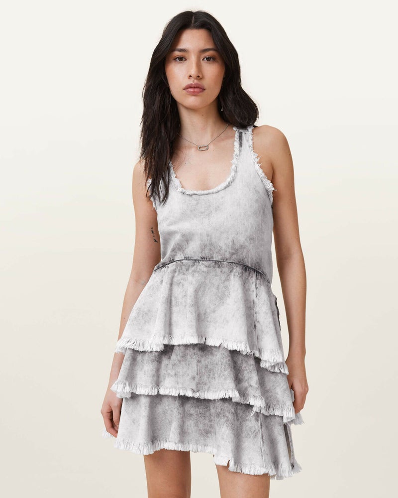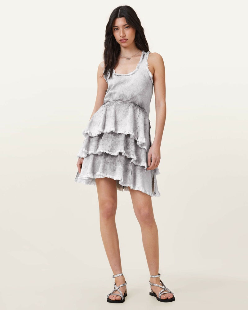 Cavarly ドレスが新しいルックで登場。ミニ丈になり、軽やかな素材でリラックスフィットに仕上げられ、低めのスクープネックと引き立つウエストが特徴。スカート部分はボリューム満点で、膝上に重ねられた3段のラッフルティアーが動きのある印象を与えます。少しドラマティックで、でも遊び心満載。このドレスは、季節を問わず愛用できる一着です。