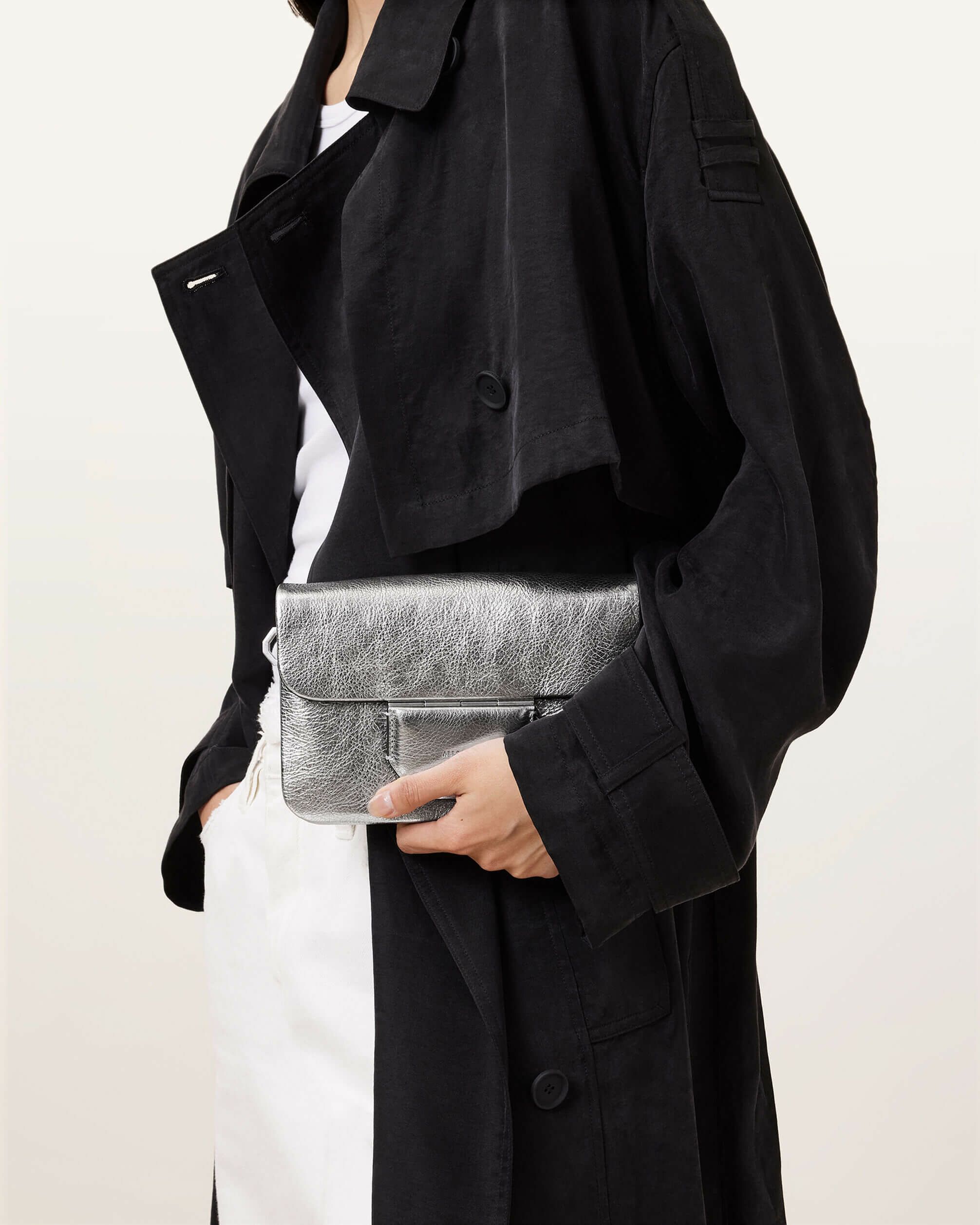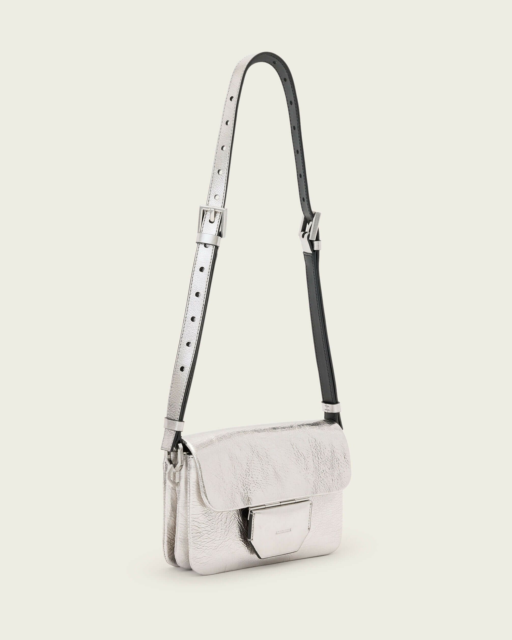 Jupiterバッグは、必要だと思っていなかった新しいシルエット。 コンパクトなサイズでマグネット留め具が特徴。ストラップはお好みに合わせて調整可能 – 体に掛けても肩に掛けてもOK。新しいハードウェアディテールと六角形のブランドパッチで、クラシックなAllSaintsスタイルがアップデートされています。