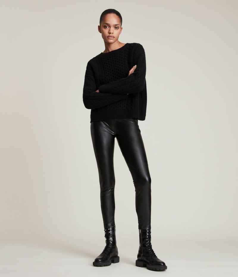 ワードローブにタフさを追加。Cora レギンスはソフトレザーを使用し、見栄えするハイウエストとスキニーレッグを特徴としたデザイン。