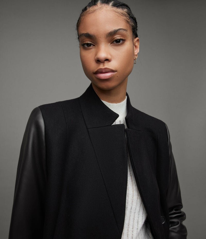 Sidney コートでクラシックスタイル。ラグジュアリーなカシミアとイタリア製ウールブレンドファブリックを使用したシングルブレストシルエット。スリーブのやわらかいラムレザーのコントラストがタイムレスなスタイルに新しさをプラス。スタンドカラーがアイコニックな洗練されたシェイプ。寒い季節のワードローブに最適。