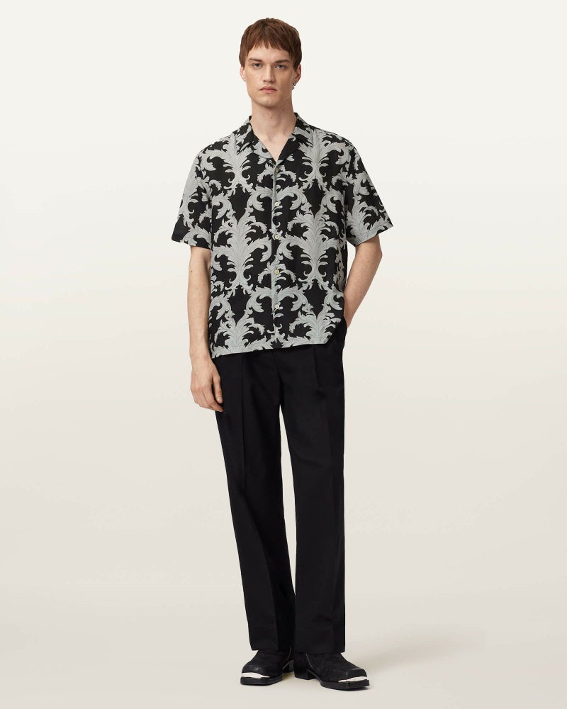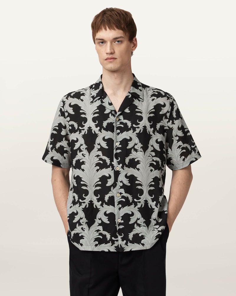 モチーフ柄が目を引く、ゆったりシャツ。