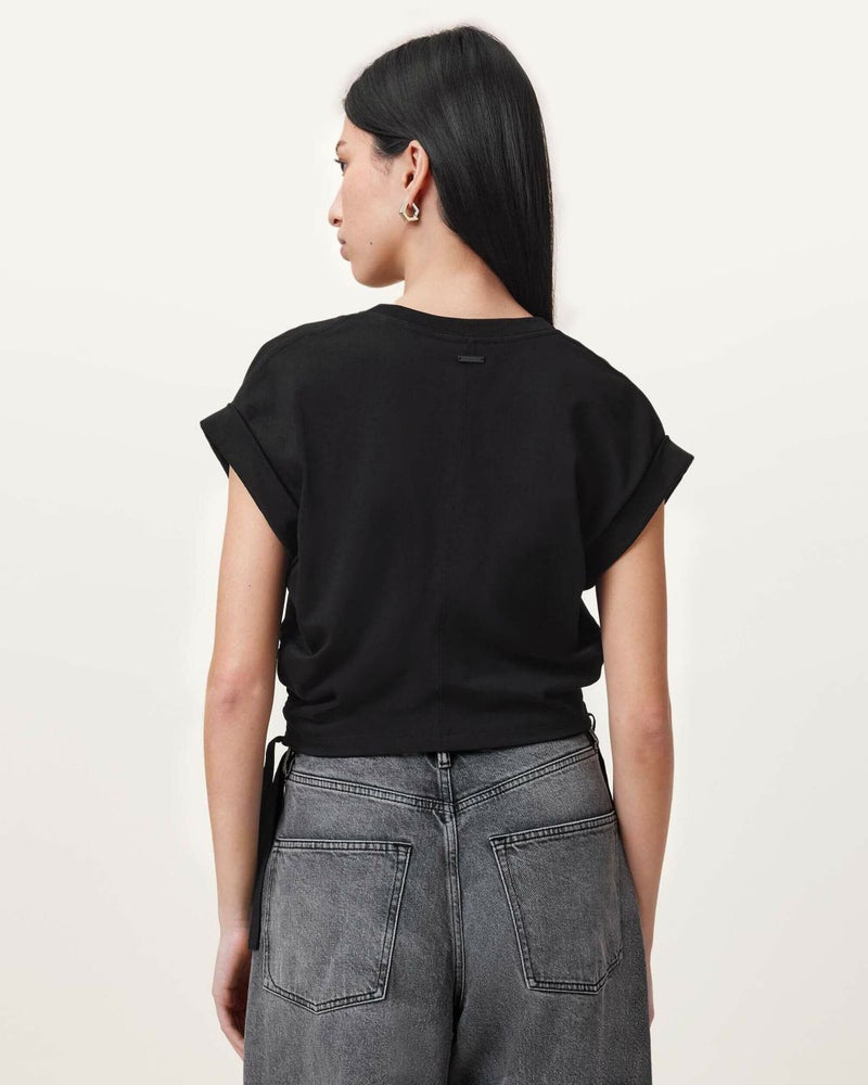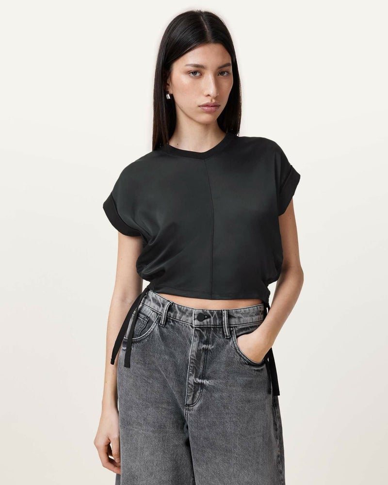 Mira Tシャツで理想のフィット。サテンを使用し、サイドは調整可能なドローコード仕上げ。ハイウエストジーンズと合わせてスタイリングの完成。