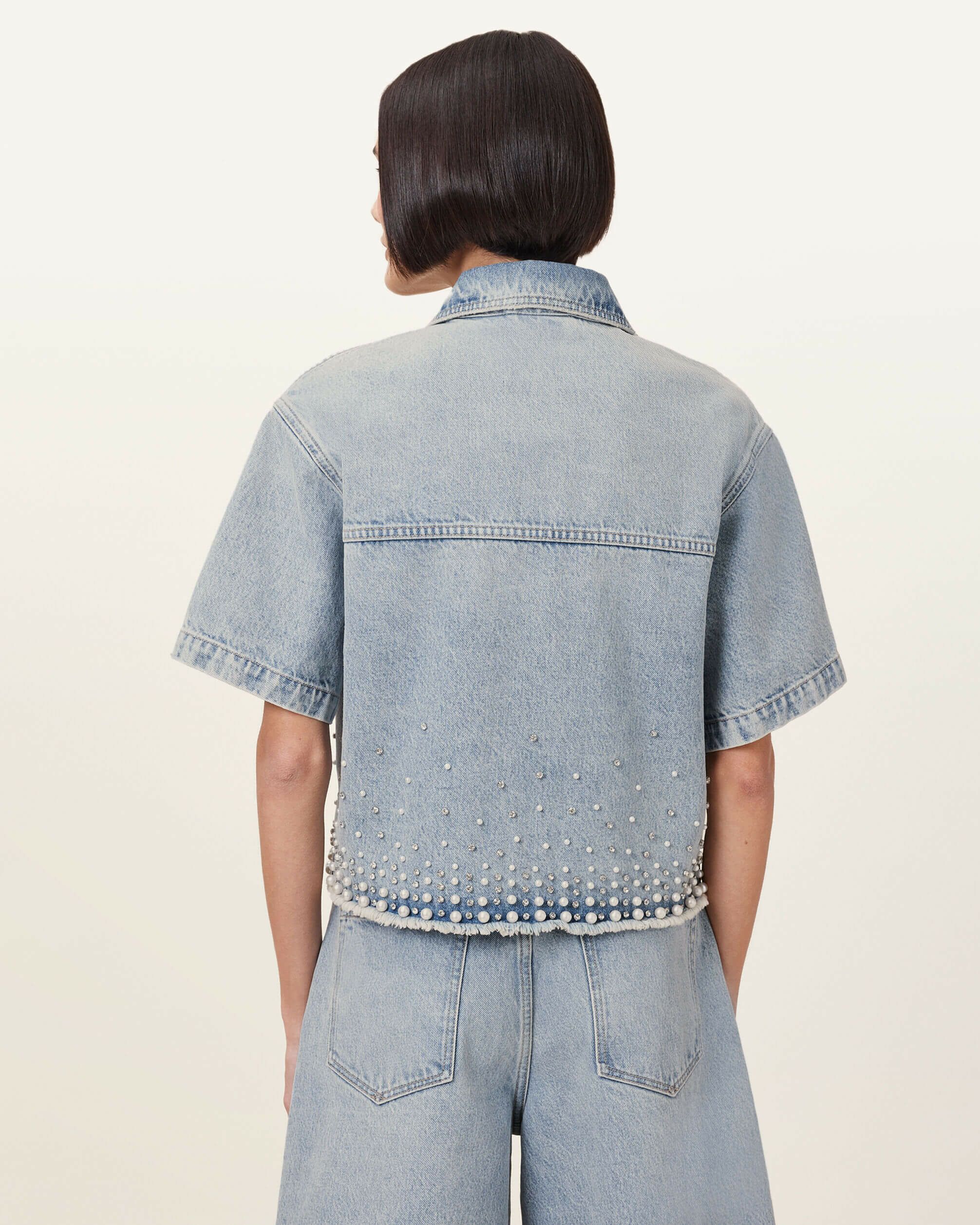 Tove シャツは、クラシックなデニムスタイルをアップデートした一着。オーバーサイズのクロップドシルエットに仕立て、裾には華やかなエンベリッシュメントをプラス。ラフなカットオフヘムとクリーンなスリーブの仕上げが、絶妙なバランスを生み出します。