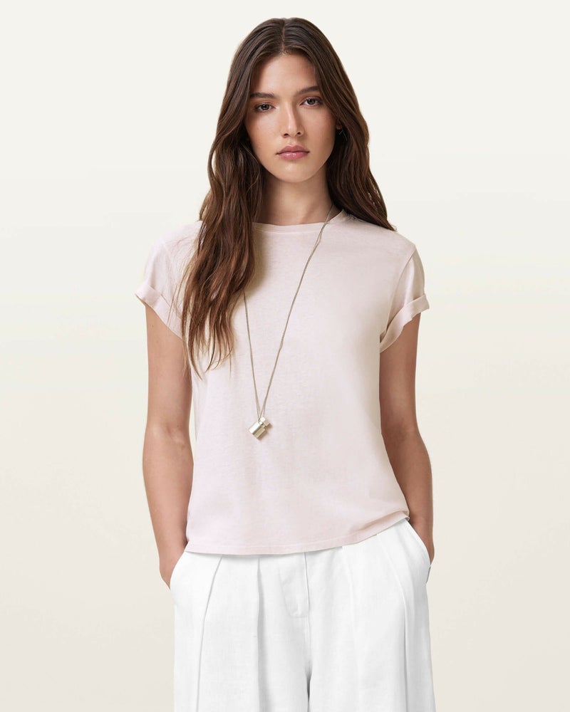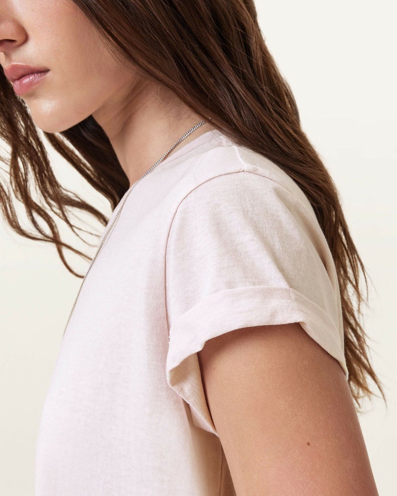 Anna Tシャツは、柔らかなオーガニックコットンで作られ、レギュラーシルエットで仕立てられています。ロールアップしたカフスと、首元に施されたAllSaintsのシグネチャーロゴが特徴。定番アイテムとして、季節を問わず活躍する一枚です。