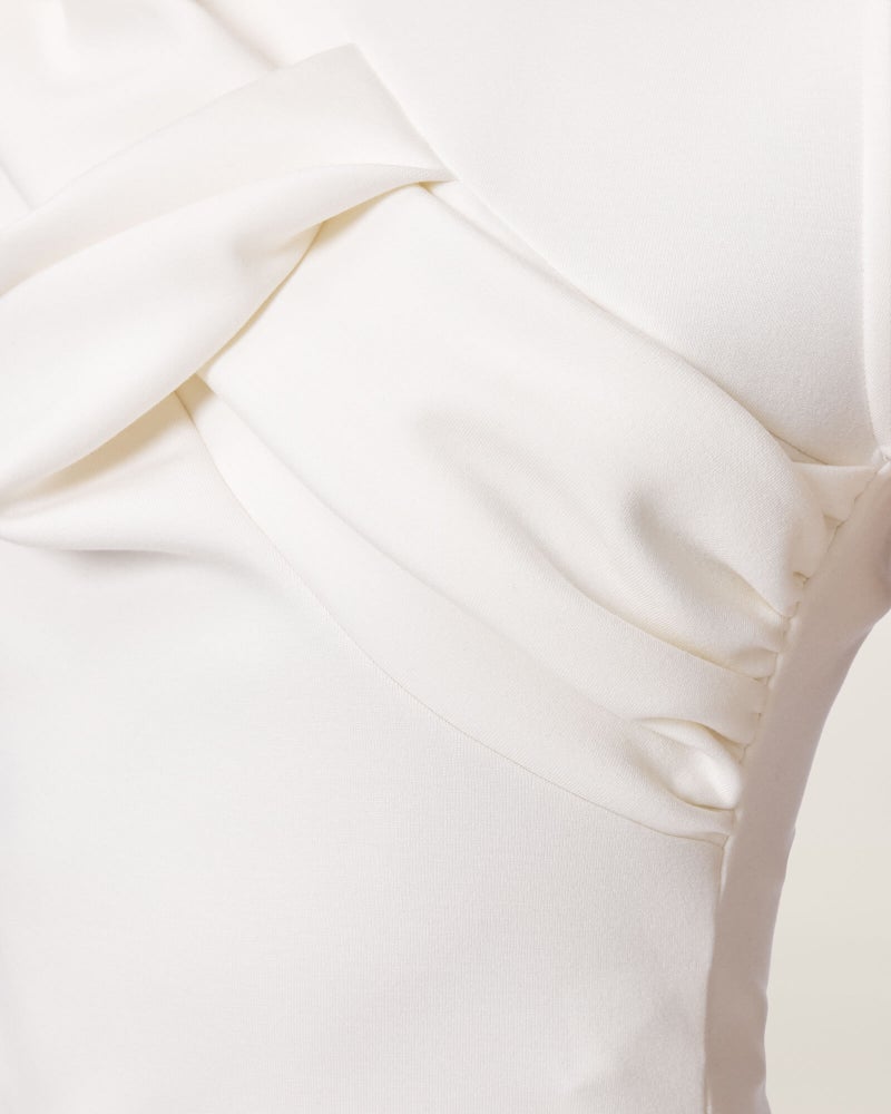 アシンメトリーなノットディテールが、さりげないアクセントに。