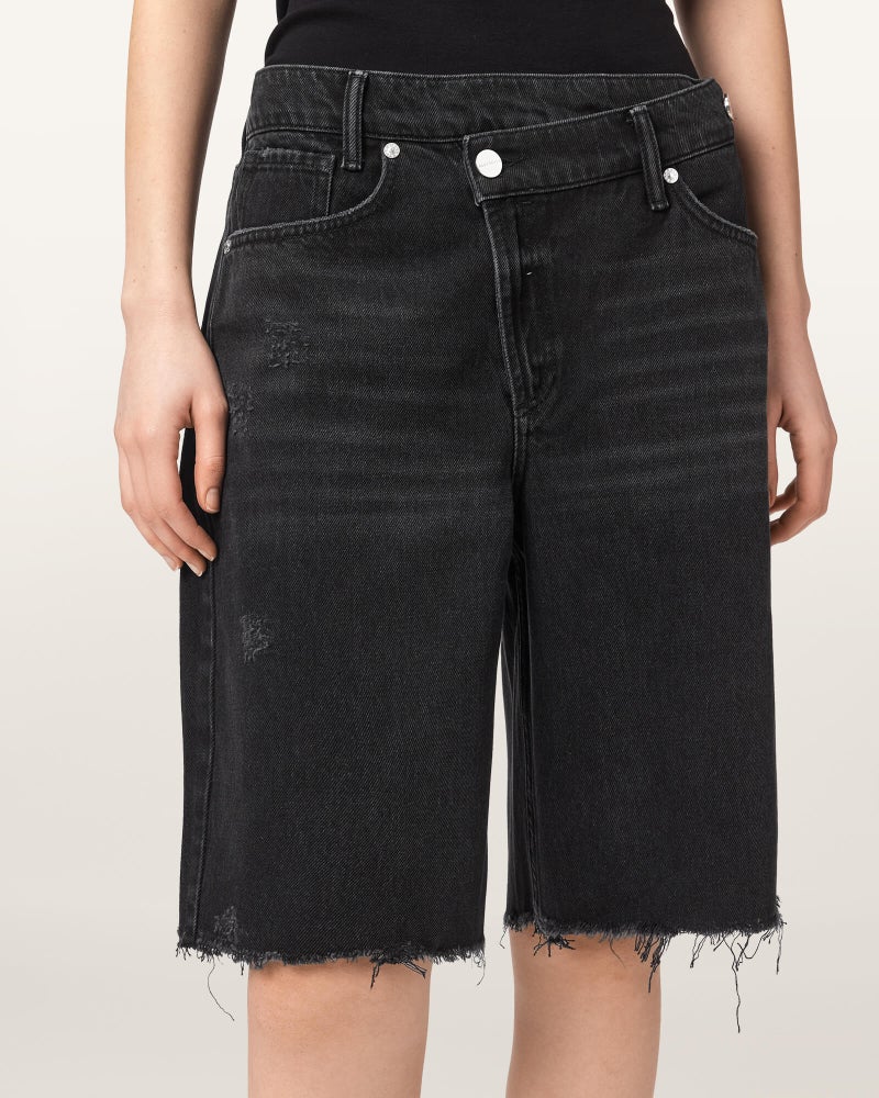 シグネチャーデニムを使用した、クロスオーバーショーツ。