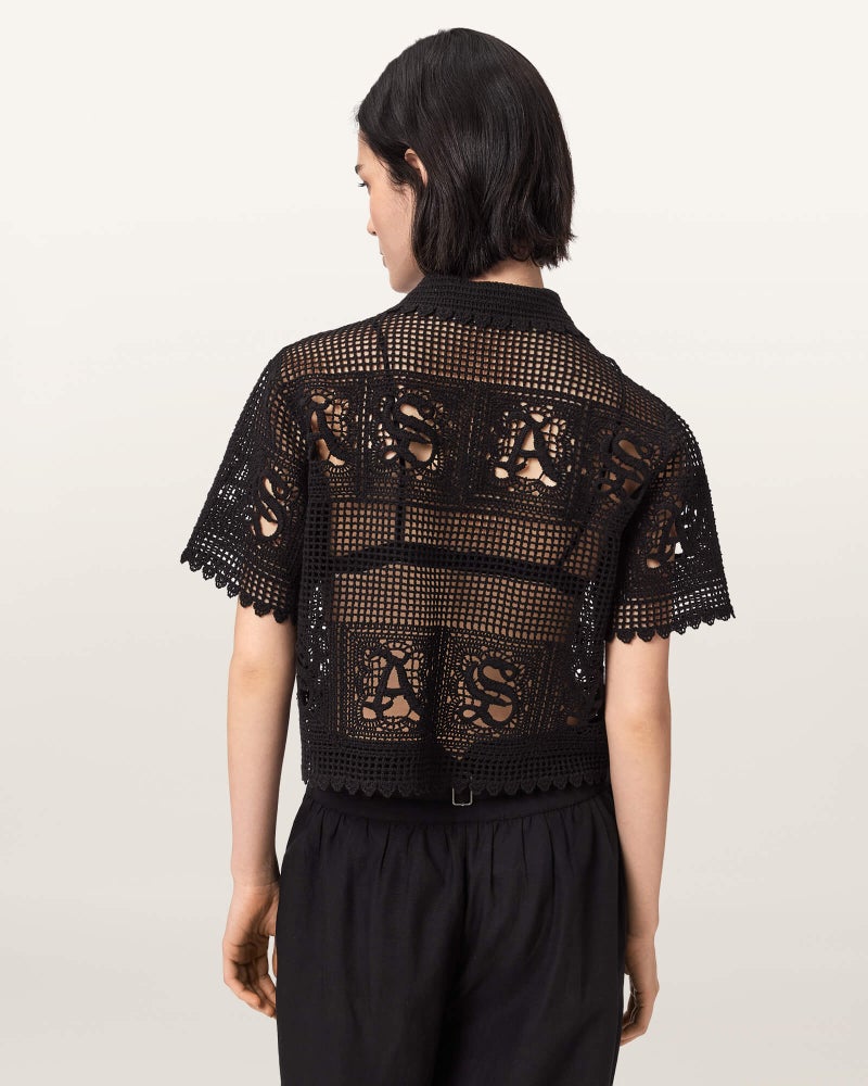 レギュラーシルエットに、クロシェ編みのオープンニットモチーフ。