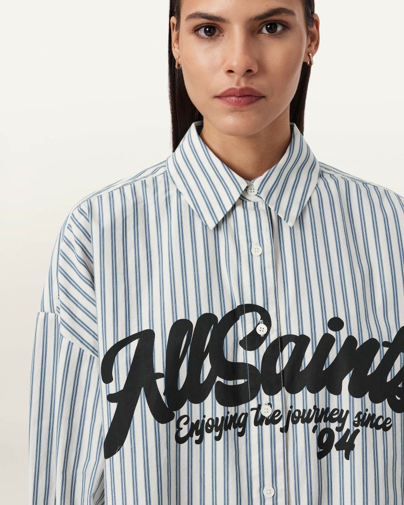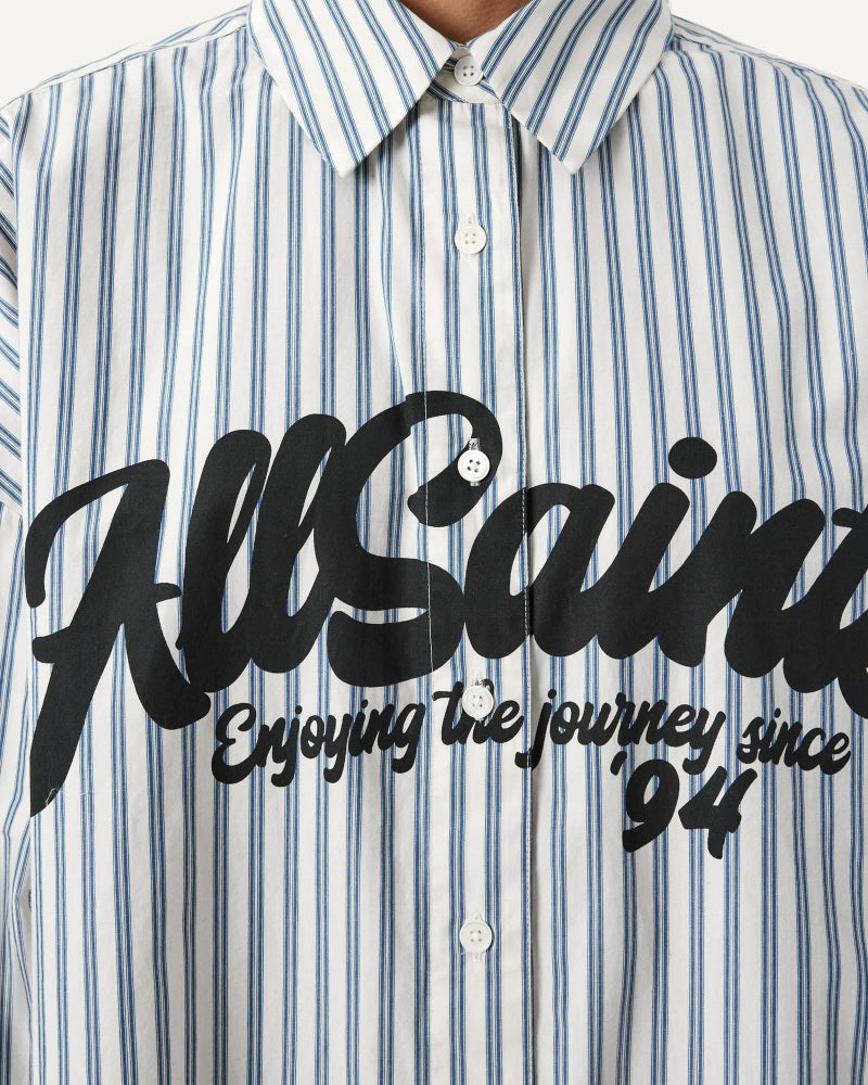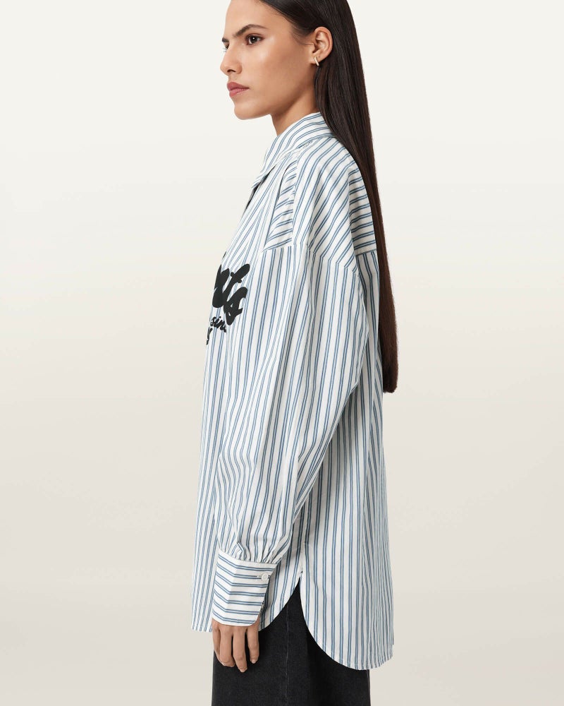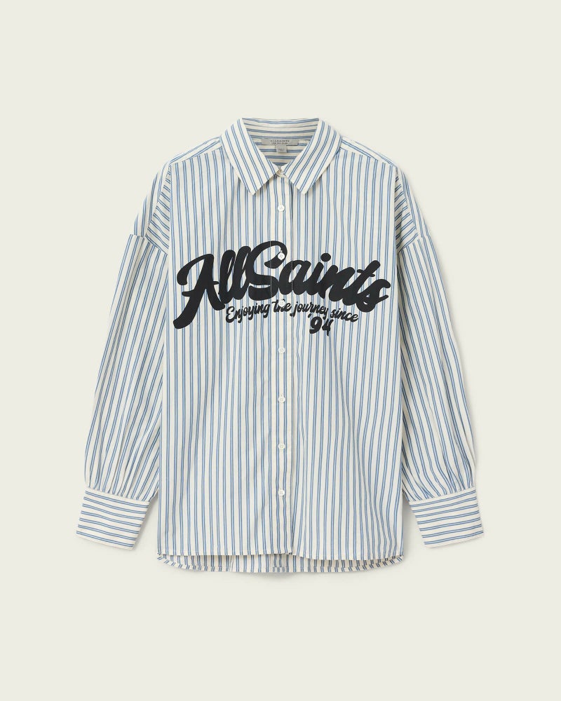 週末のスタイリングをアップデートする Adrianne ストライプ シャツ。