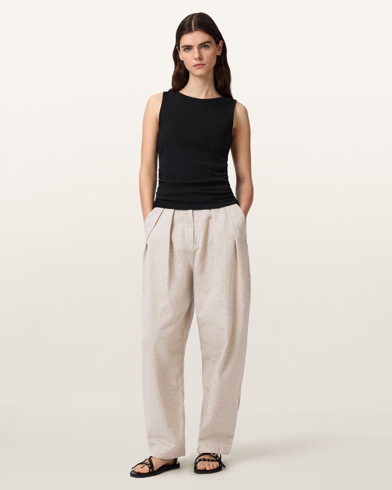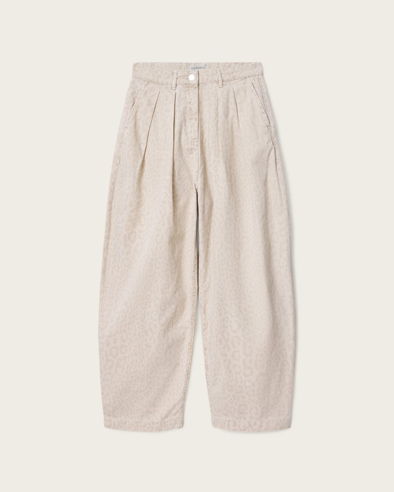 ハイウエストのプリーツ入りバレルレッグトラウザー。