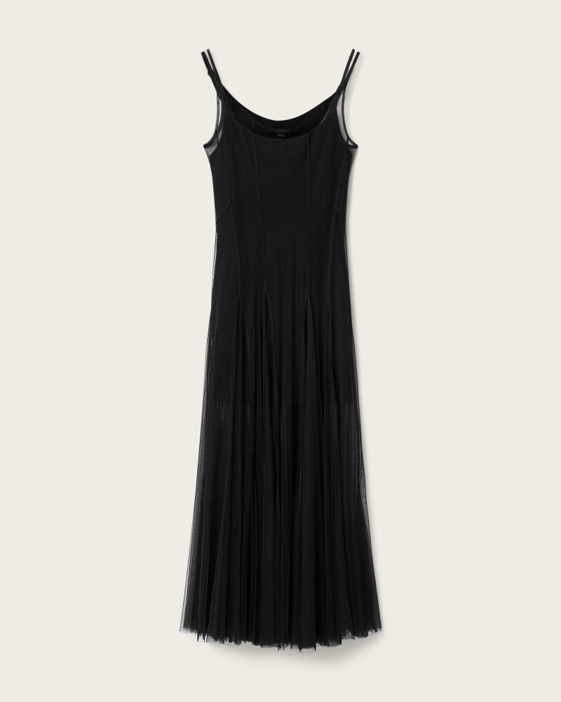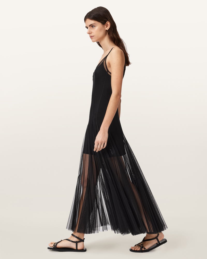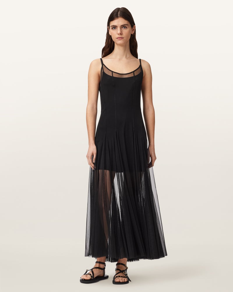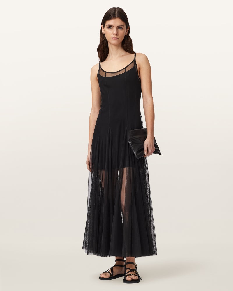 外側はチュールのマキシドレス、内側はショートドレス。