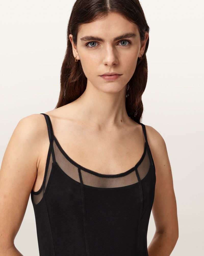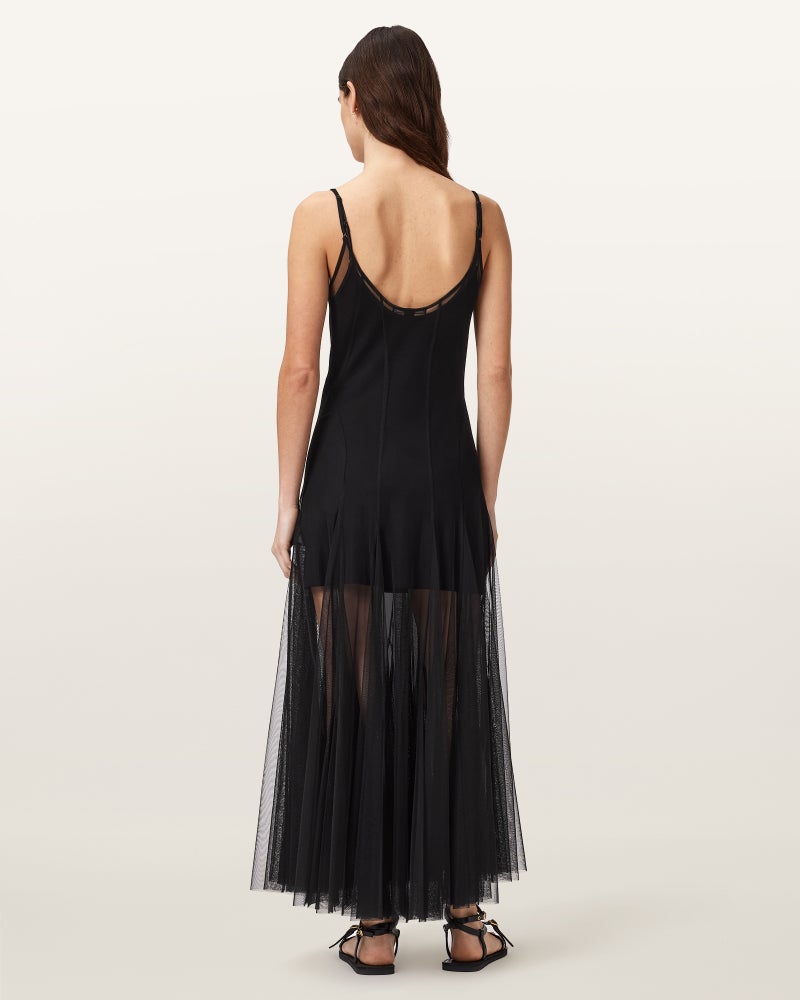 マキシドレスは、ブランドロゴ入りスライドアジャスター付きの調節可能なストラップ