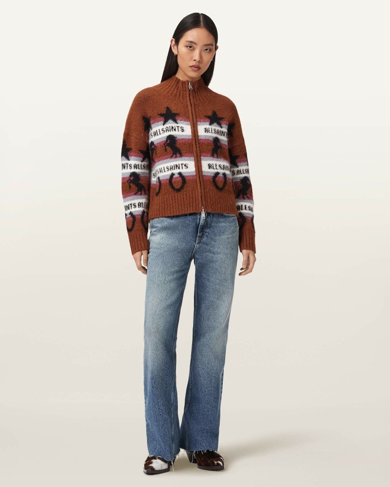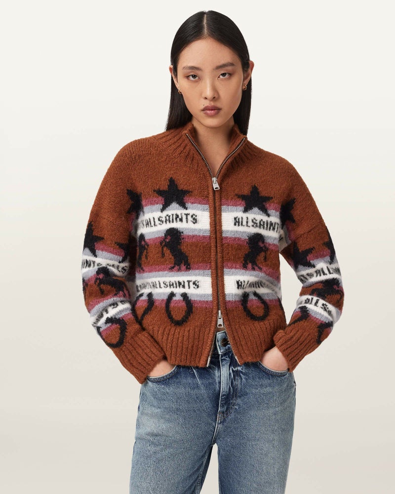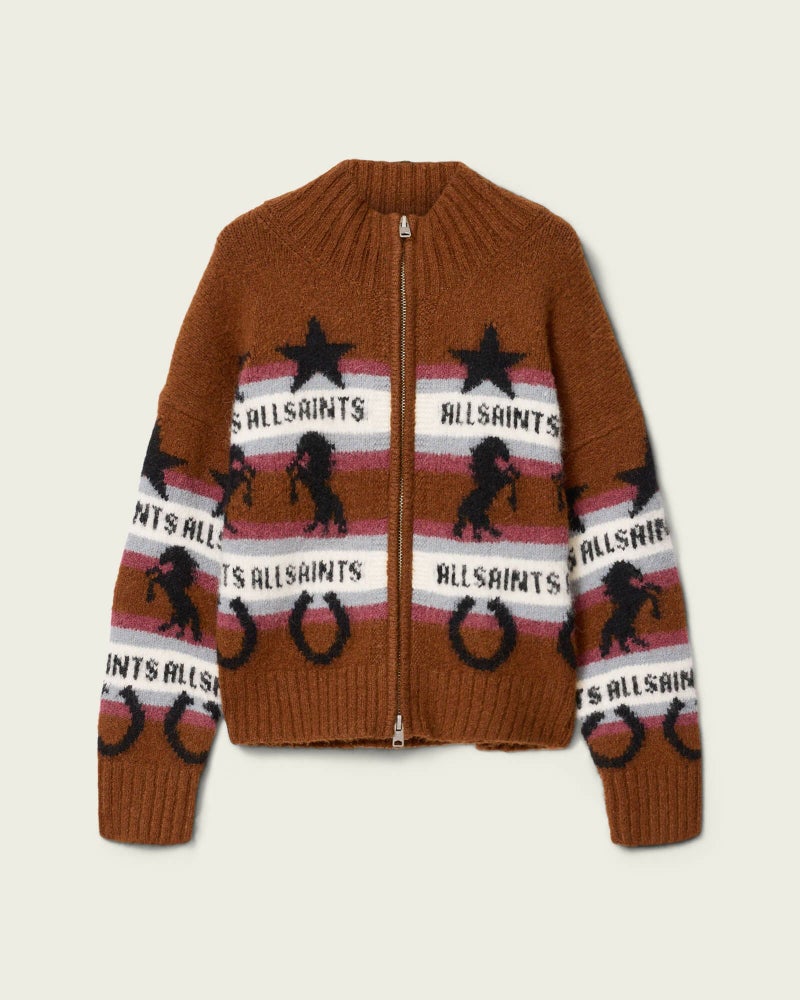 アルパカ混素材ならではの心地よさに、ウエスタン着想のジャカードを全体に配したEpona カーディガン。