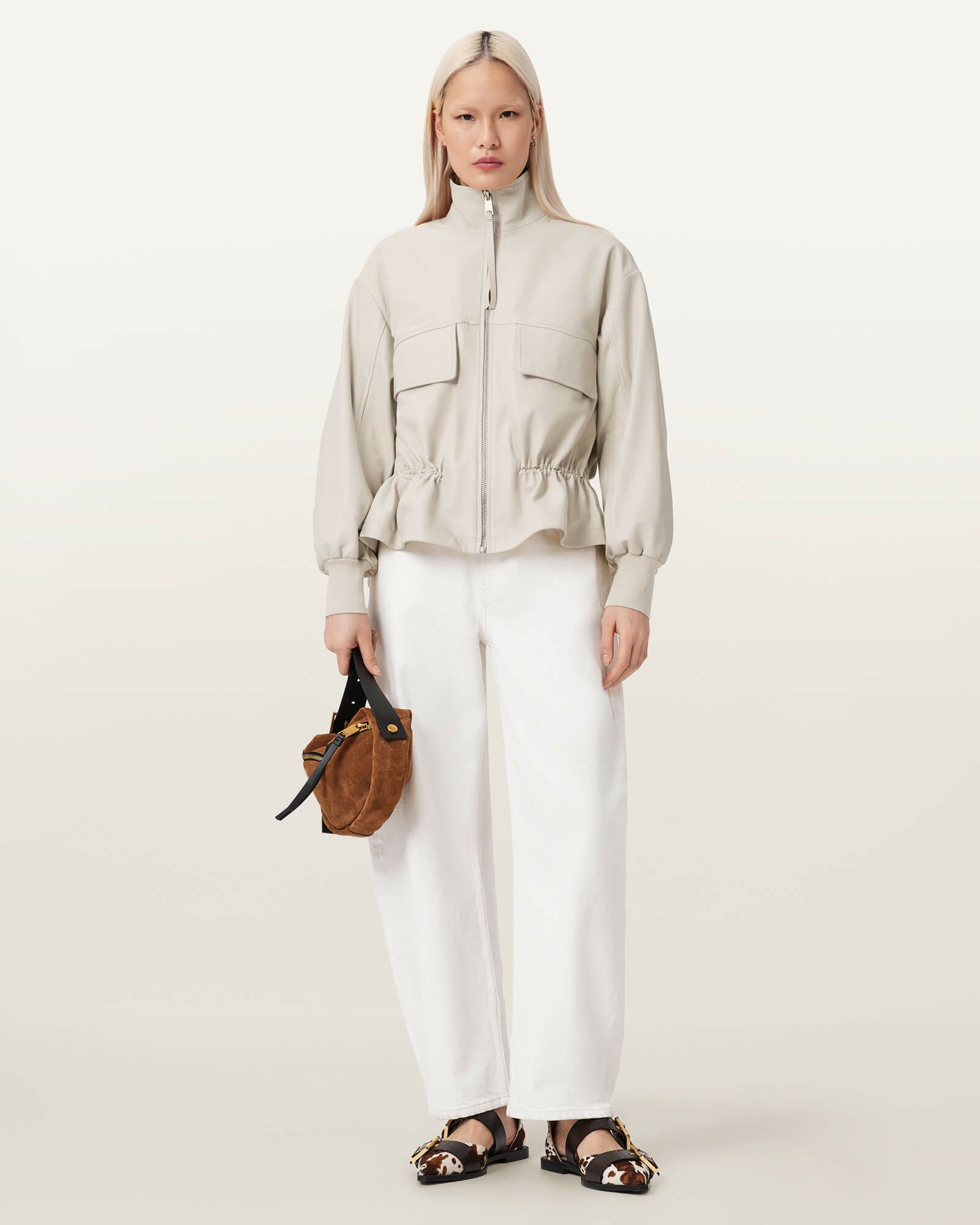 AllSaintsらしいシープレザーに、ペプラムヘムで洗練されたアクセントをプラス。
