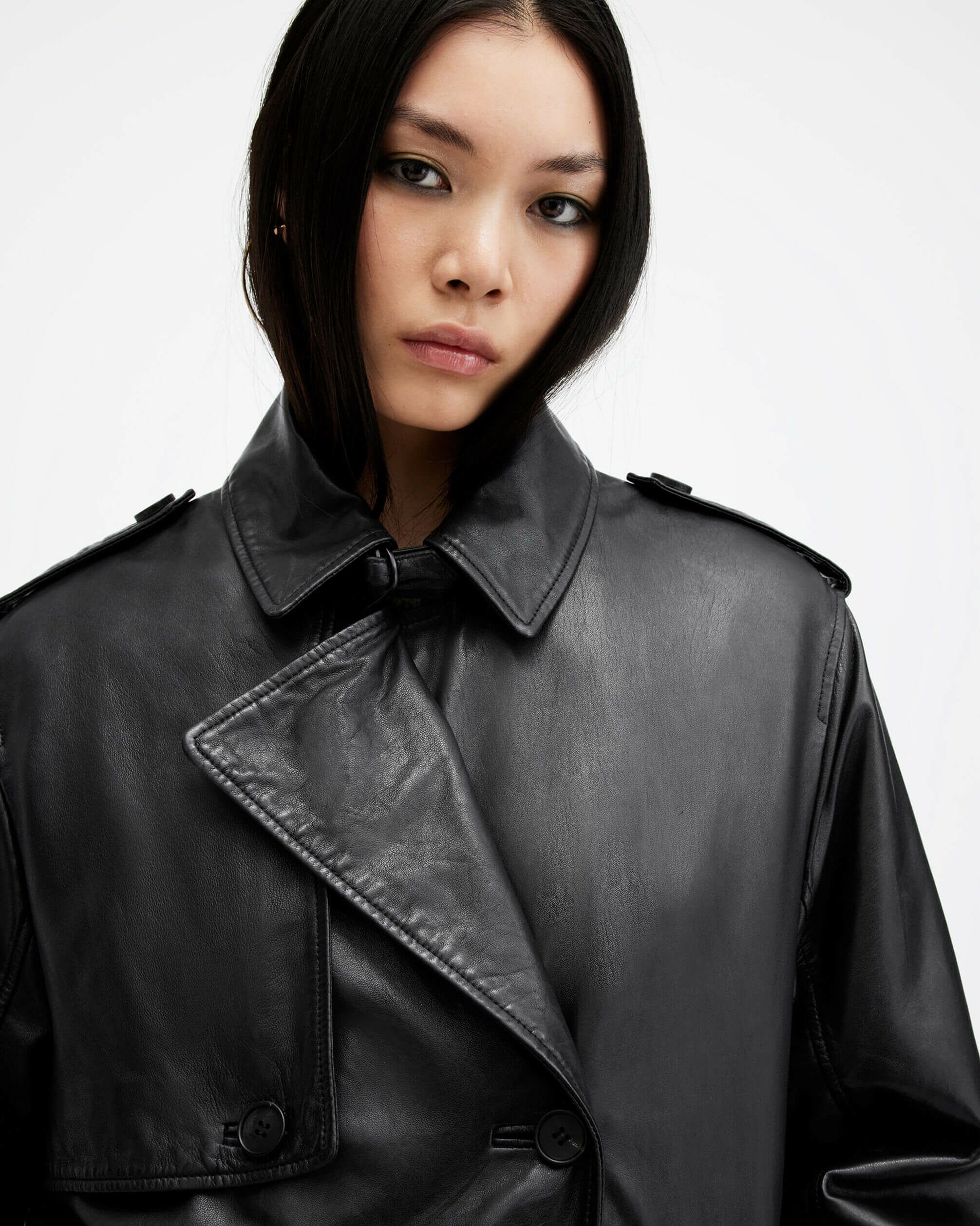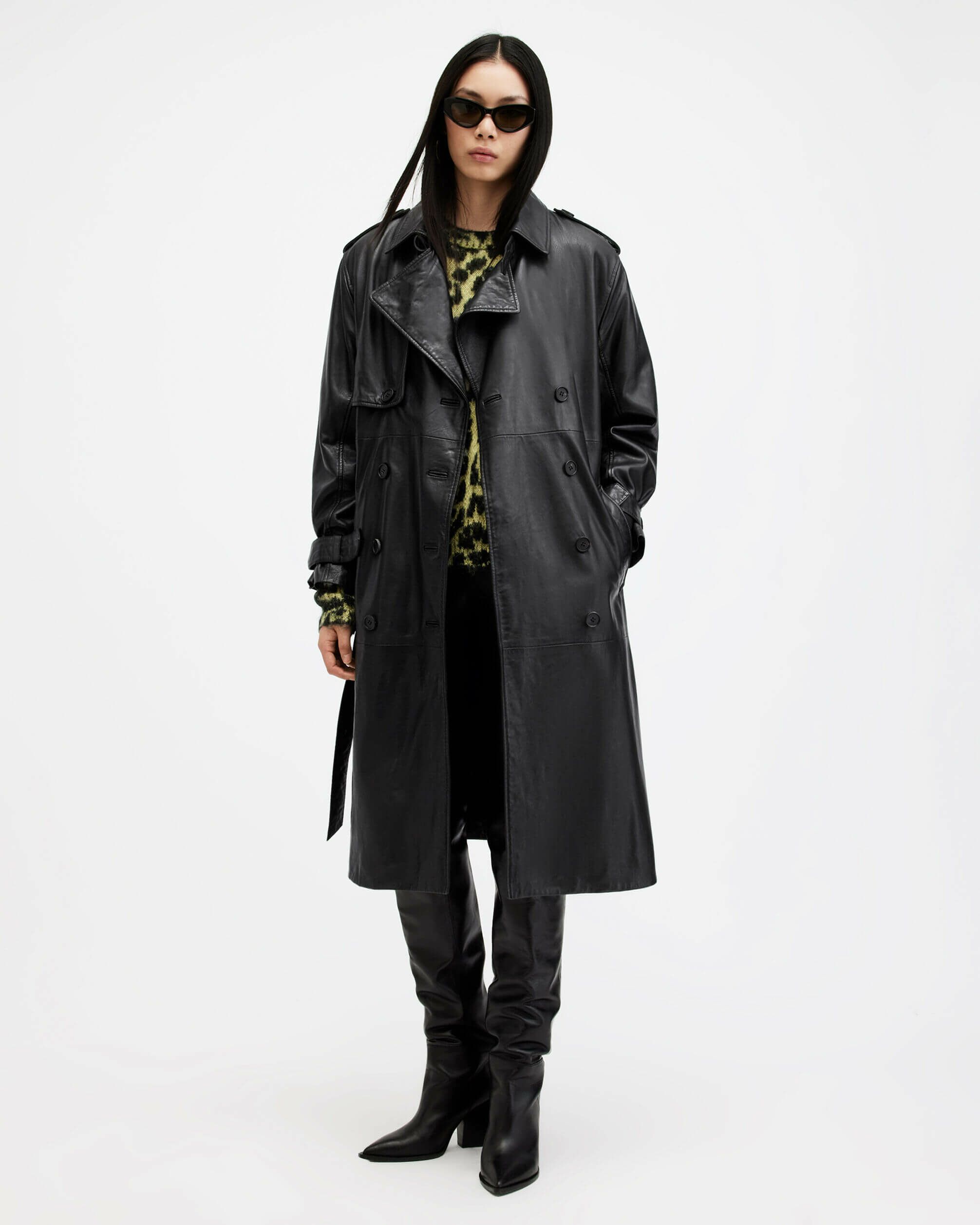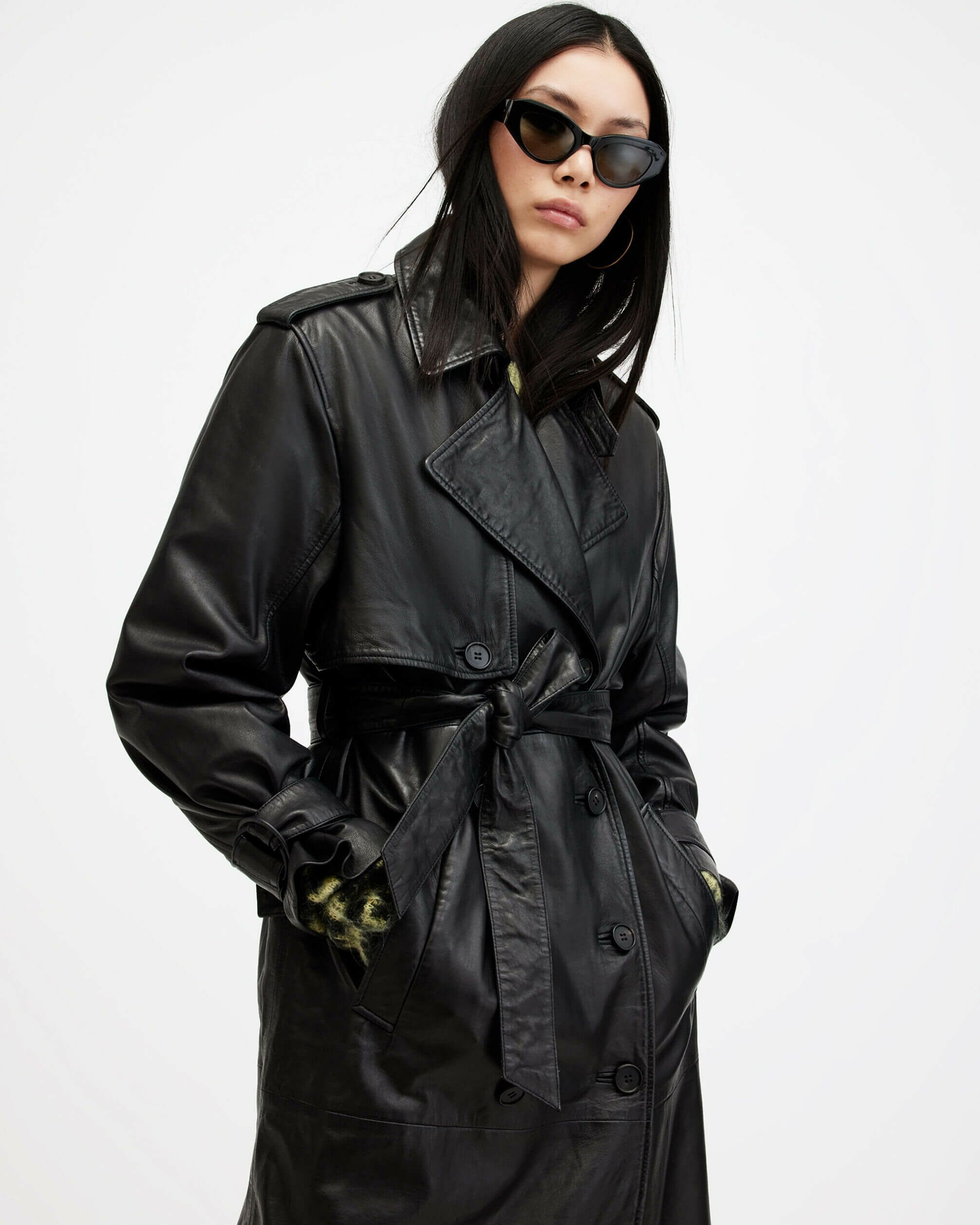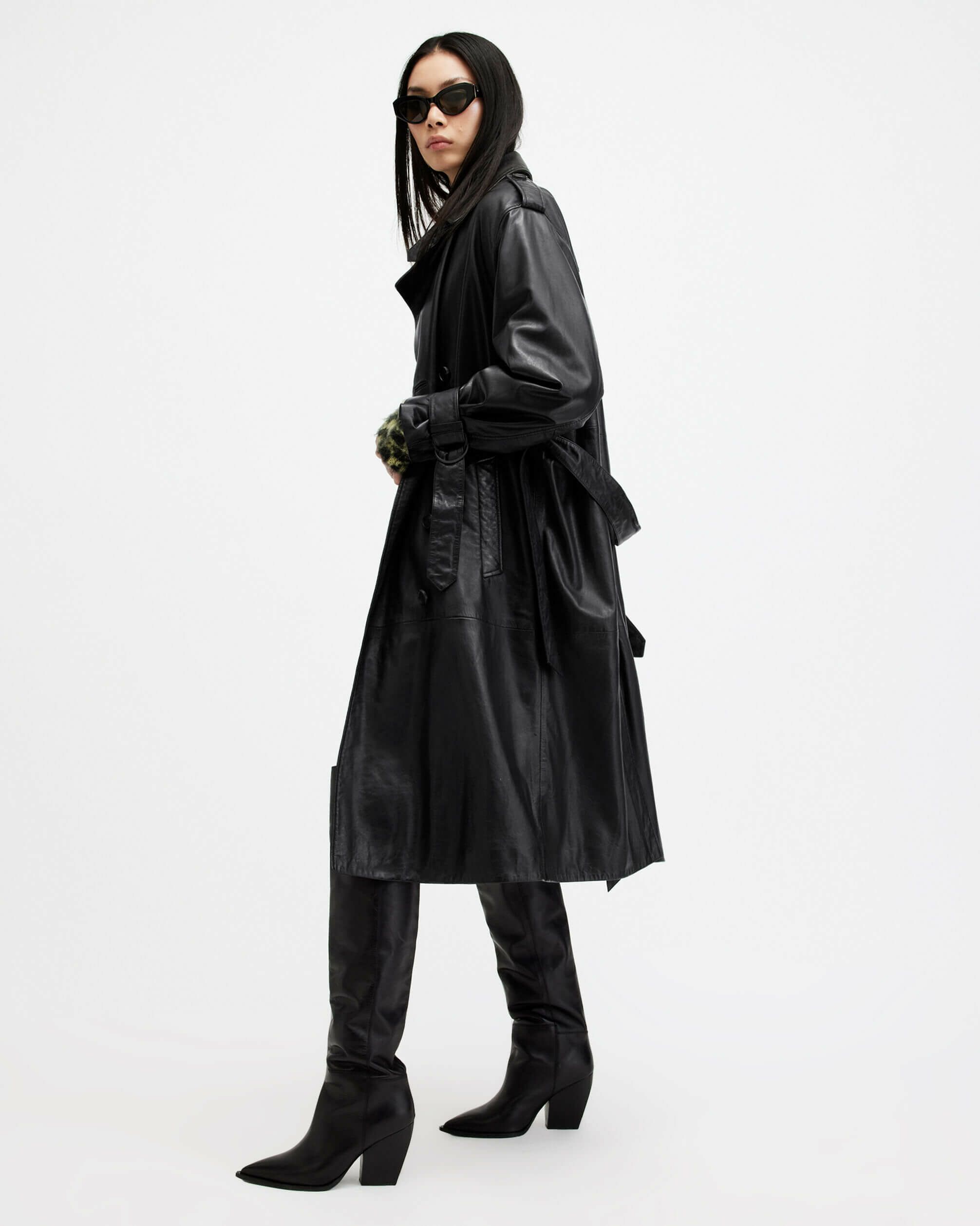 レベルの違うレザー、Hendry トレンチコートは新シーズンのコレクションのハイライト。やわらかいレザーを使用し、ウエストにタイ、ドロップショルダーを備えたロングダブルブレストシルエット。クラシックトレンチをベースに、ストームフラップディテール、バックル開閉を備えた調整可能なワイドスリーブ。扱いやすいライトウェイトレザーにウォッシュ加工を施し、レザーに自然にハイ・アンド・ローを演出するオーセンティックなヴィンテージスタイル仕上げ。スタイルを完成させるオールセインツのメタル金具。